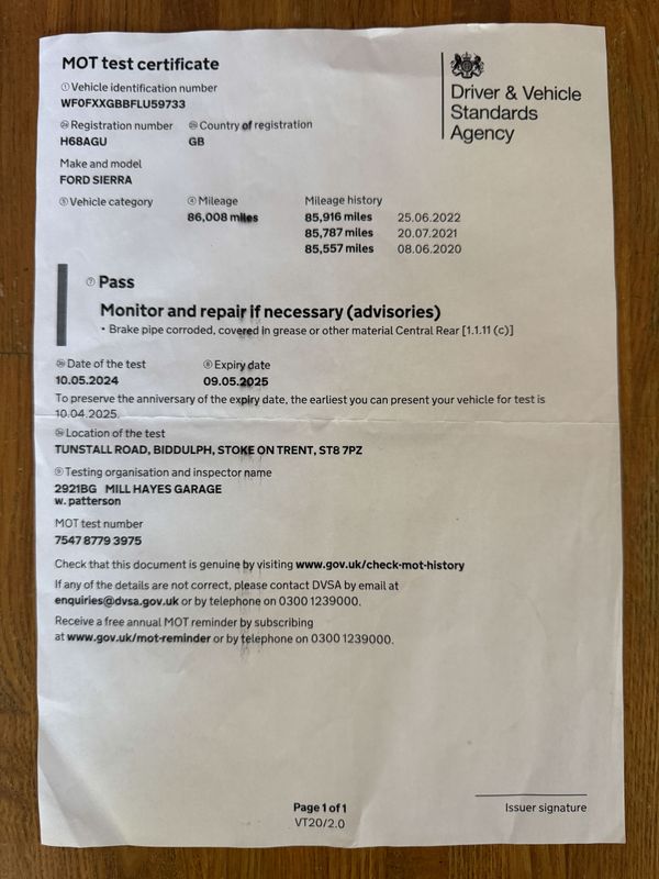 Current MOT valid until 2nd July 2026