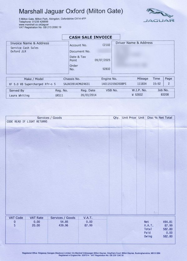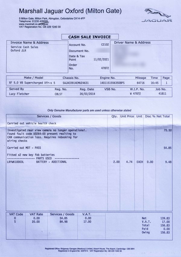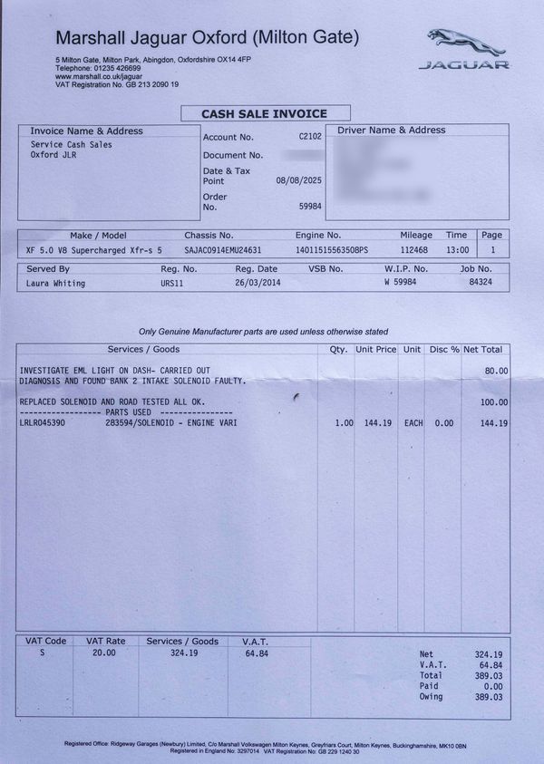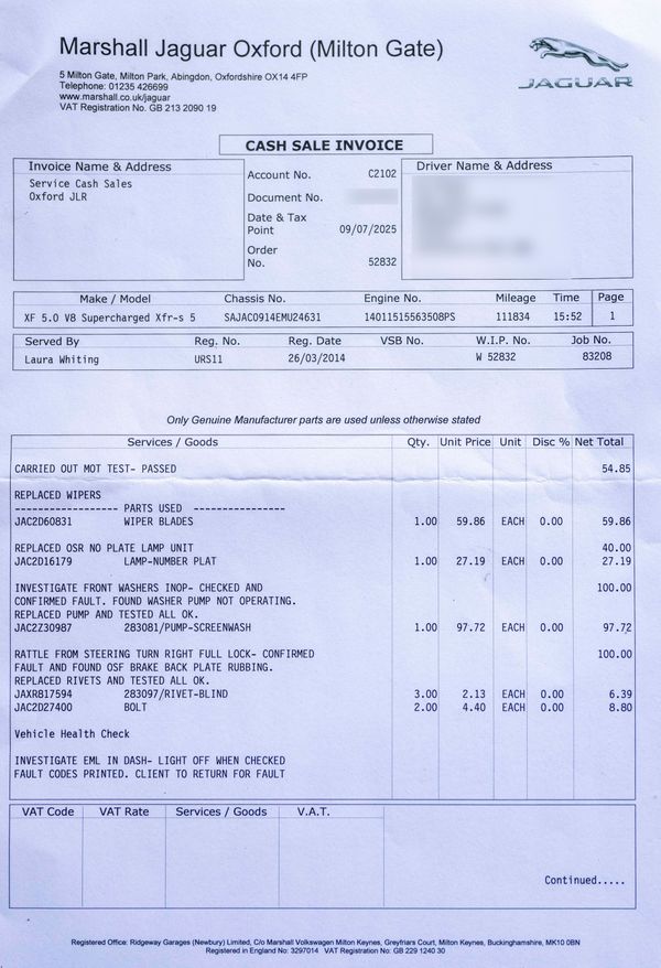Various invoices for servicing and work carried out
