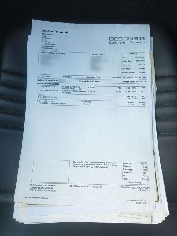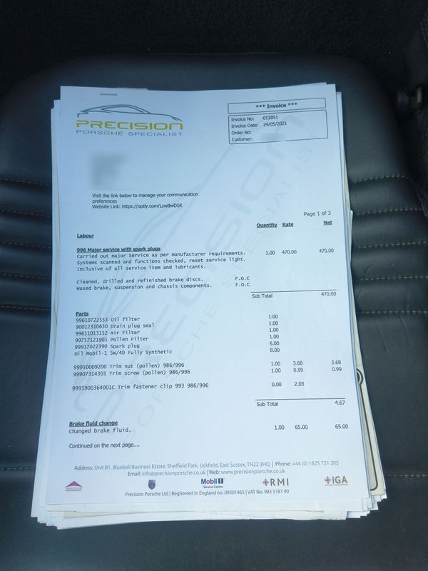Numerous invoices for servicing and maintenance