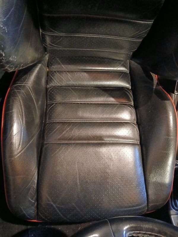 Black leather interior with red contrast piping
