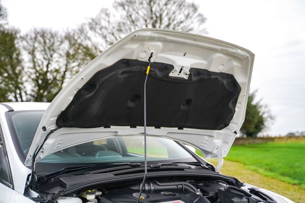 White paintwork perfectly suits the car’s lines and is presented in excellent condition, with a few minor stone chips and blemishes consistent with the car’s age and mileage
