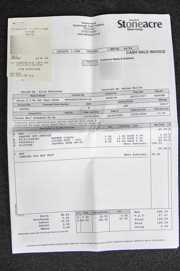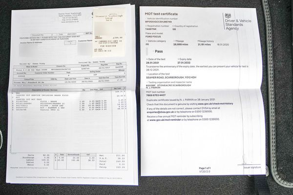 Collection of invoices for servicing and old MOT certificates