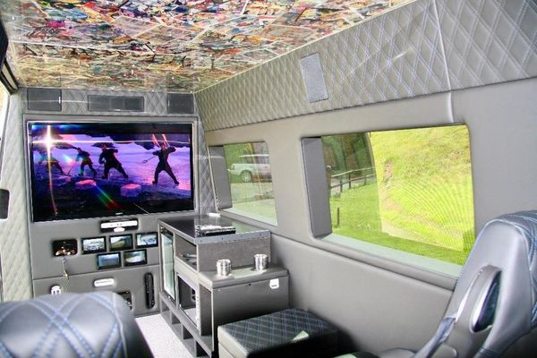 Louis Tomlinson Scooby Doo Van. Play Station, X-Box, Super Nintendo, Atari, Wi, X5 CCTV Cameras, 56'' Sony Bravia TV, Bentley Interior, Underfloor Heating, Air-Conditioning, Laser Show, 7.2 Surround Sound System, Sony Amplifier, Fridge, Microwave, Water Pistols, Foot Stools, Intercom System To Driver, Loudspeaker, This Really Has Been Kitted Out To The Highest Of Standards, Take A Look On You Tube at https://www.youtube.com/watch?v=NbsRNAcmdus Camper Van