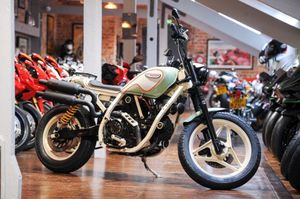 1987 Ducati Scrambler 645cc 650 Indiana Urban Street Tracker motorbikes for sale in Sheffield, South Yorkshire, in green & white this Ducati Scrambler 645cc 650 Indiana Urban Street Tracker is another fine example of what is available from used motorbike specialist dealers, The Bike Specialists, Sheffield, South Yorkshire THE BIKE SPECIALISTS, TRADING STANDARD AWARD WINNERS. Here at The Bike Specialists we are proud to offer for sale our Redonda Motors Ducati 650 Indiana Urban Street Tracker. This stunning bike originally left the factory in 1987 as a standard 650 Indiana, Ducati's attempt to offer a cruiser to the market place. That was until Portuguese company Redonda Motors got their hands on the bike and set out to create in their words "a beautiful street tracker" They altered, restructured and shortened the frame around the Ducati engine with a brief to use as many of the original parts as possible. The fuel tank was reworked to suit the flavour of the machine and the tail section was topped with a thin saddle and small rack. Time was spent modifying the engine and re-positioning the carburettors as well as removing belt covers and remodelling the clutch cover to expose the inner workings. A two into two exhaust system was fitted with Marzocchi front suspension and Ohlins rear shocks completing the build. The bike will receive a service and MOT prior tosale and is supplied with copies of an article about the bike that features in the publication "The Ride, 2nd Gear" Please do not hesitate to call if you want to take advantage of this opportunity to purchase a rare original Ducati classic. We offer full finance options and can organise delivery worldwide.