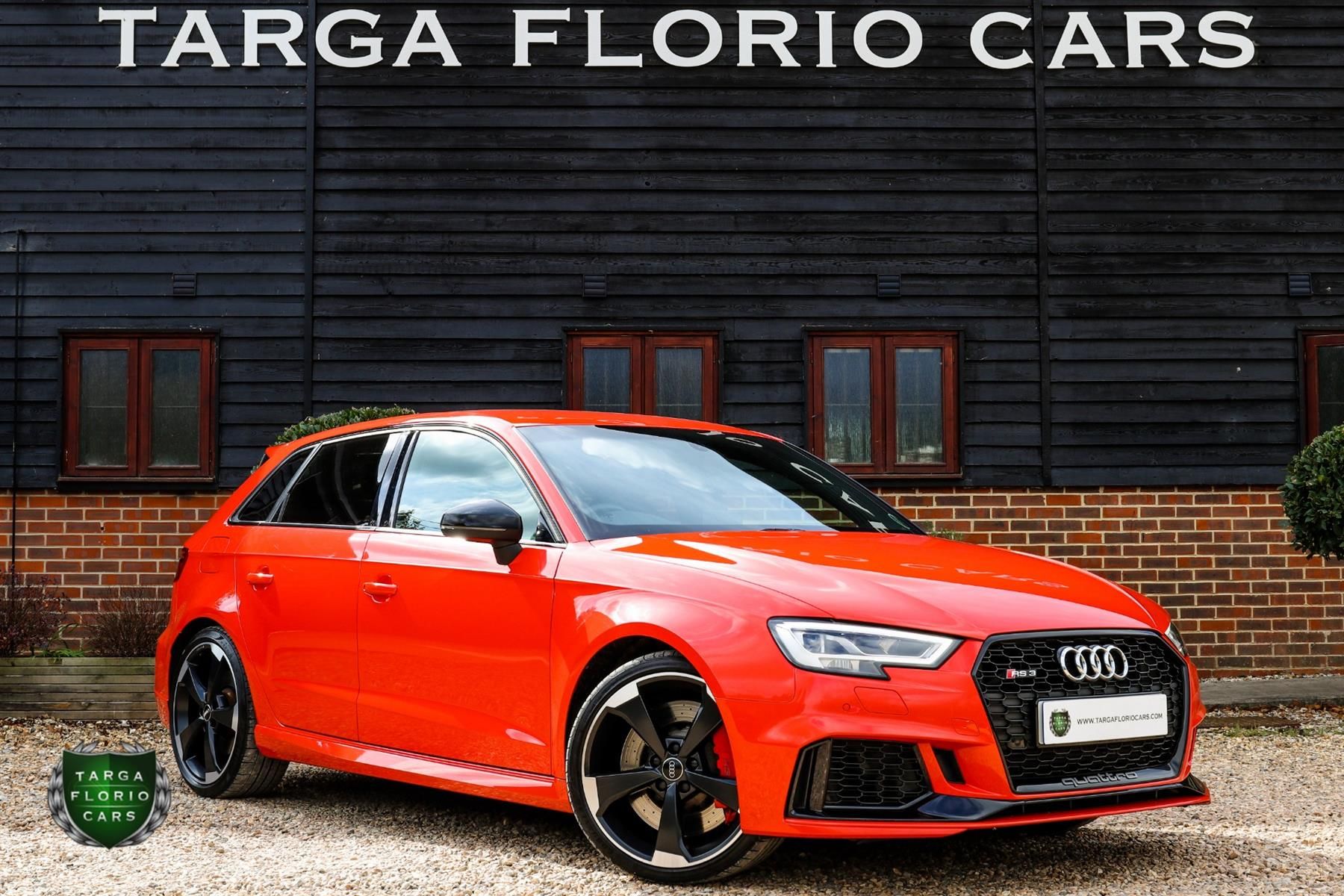 Catalunya Red - Metallic, Fine Nappa Leather - Black with Diamond Quilting Design + Super Sports Seats, Design Pack - RS3, Comfort and Sound Pack, High Gloss Black Styling Pack, 19 Inch 5 Arm Rotor Design Wheels with Diamond Cut Finish, Sports Exhaust System, Privacy Glass, Red Brake Callipers Audi RS3 2.5 TFSI Sportback Quattro S-Tronic Registered July 2018 (18 Reg) Finished in Catalunya Red Metallic with Full Black Quilted Nappa Leather Interior with Red Contrast Stitching 19 Inch Rotor Alloy Wheels | Audi Exclusive Titanium Black Styling Package | Comfort Package | Bang & Olufsen Sound System | Reversing Camera | Hold Assist | Advanced Key | Gloss Black Styling Pack | Front Spoiler | RS Design Pack | Leather Package | Front and Rear Floor Mats in Seat Cover Colour | Brake Calipers in Red | Super Sport Bucket Seats | Electric WBang & Olufsen Sound System | Reversing Camera Lumbar Support | Wing Mirrors in Black | Privacy Glass | RS Sports Exhaust System | Audi Drive Select | Sports Suspension | Flat-Bottomed Sports Leather Steering Wheel | Sports Suspension | Auto-Dimming Rear-View Mirrors | Extended Leather Package | MMI Navigation Plus with MMI Touch | Audi Virtual Cockpit | Automatic Lights | Automatic Wipers | Dynamic Lights | Cruise Control | Comfort Automatic Air Conditioning System | Bluetooth Handsfree | Service History: Interim Oil Change Service on 29-01-2019 @ 9721 Miles by Basingstoke Audi Oil & Air Filters Service on 26-06-2020 @ 25826 Miles by M H Autos Basingstoke Interim Oil Change Service & Four New Brake Discs + Pads on 11-05-2021 @ 36054 Miles by Piper Autos Limited Newbury Interim Oil Change Service on 16-11-2021 @ 46163 miles by Piper Autos Limited NewburyThis car is no longer available for purchase.