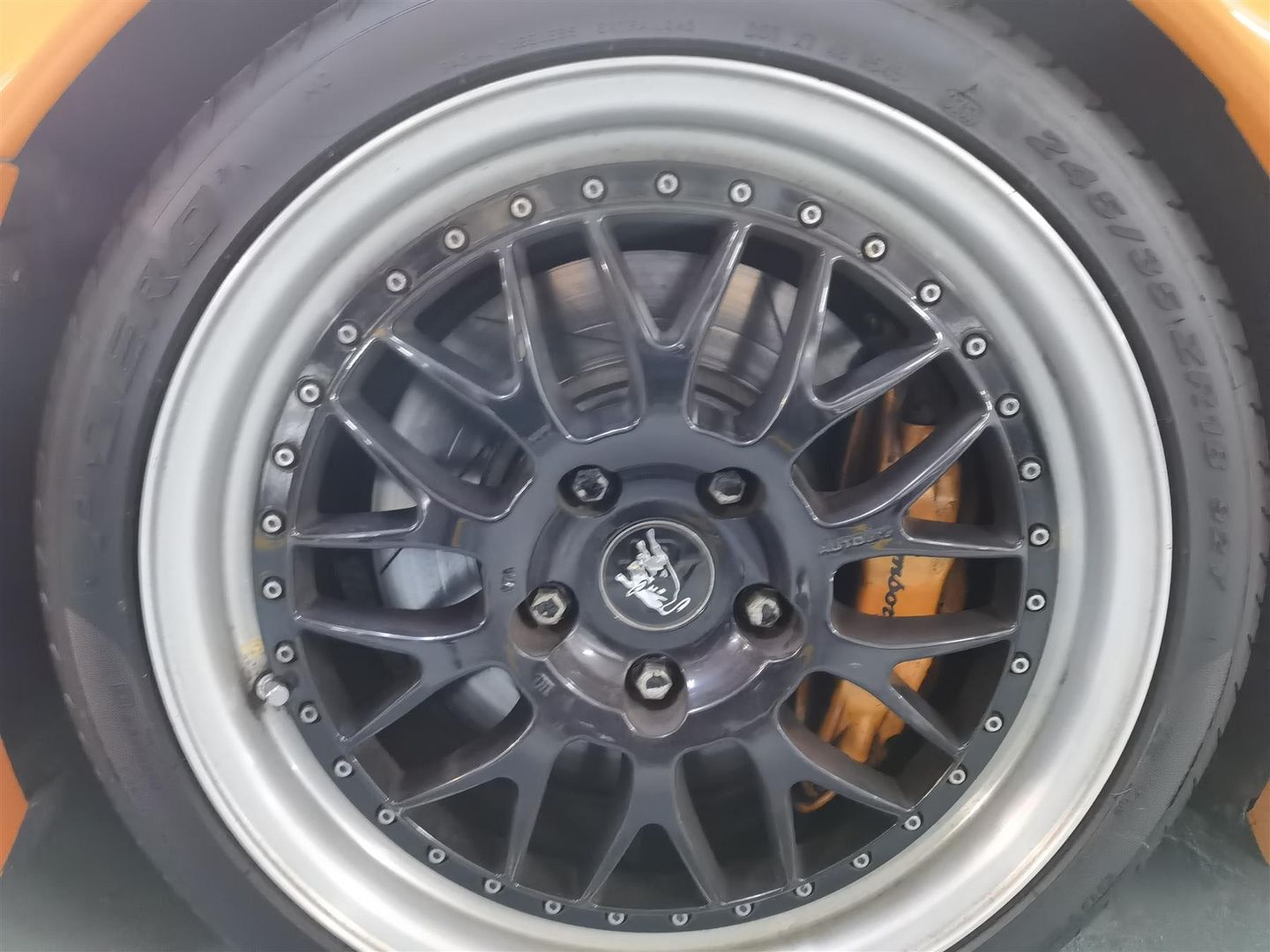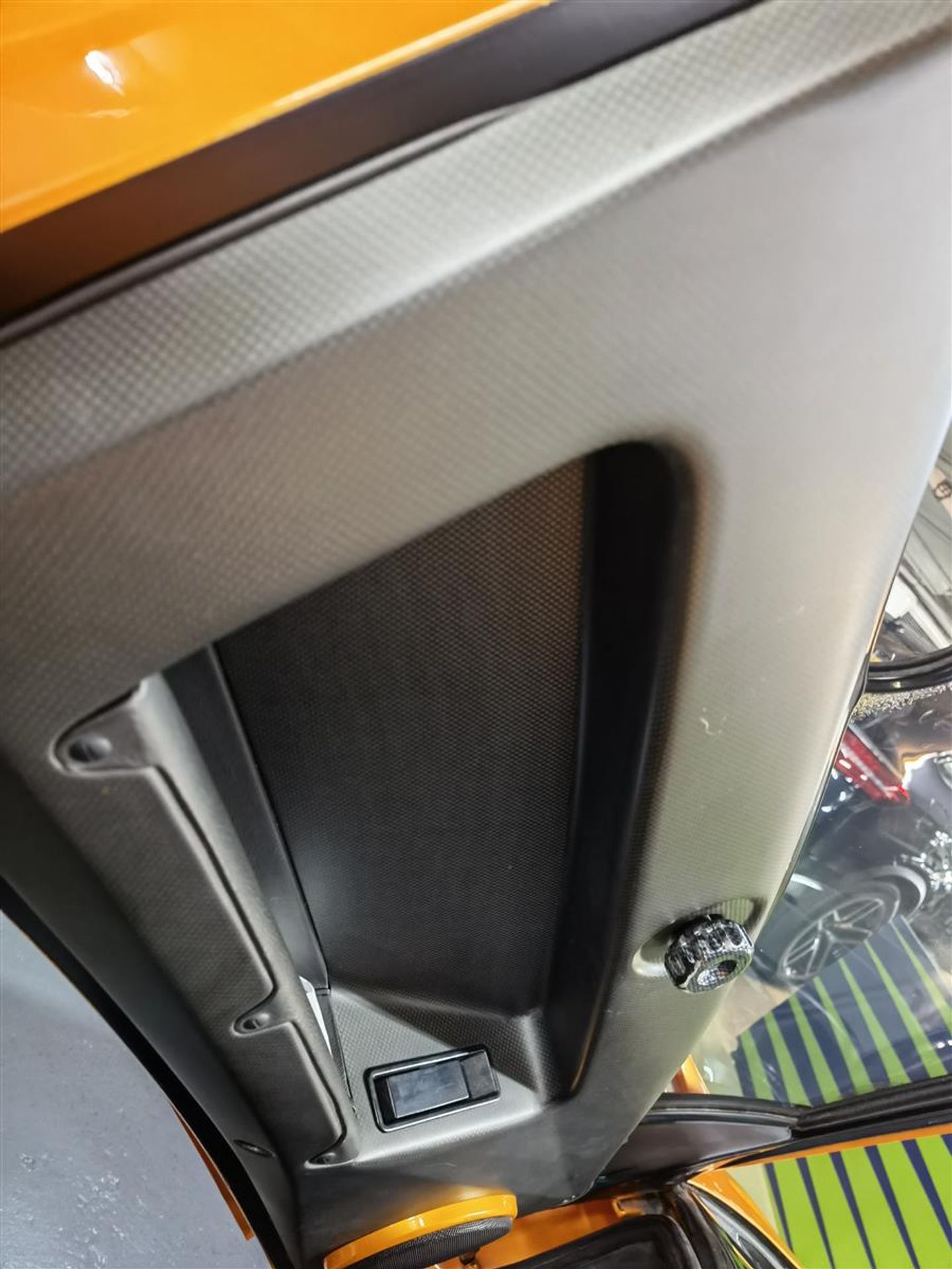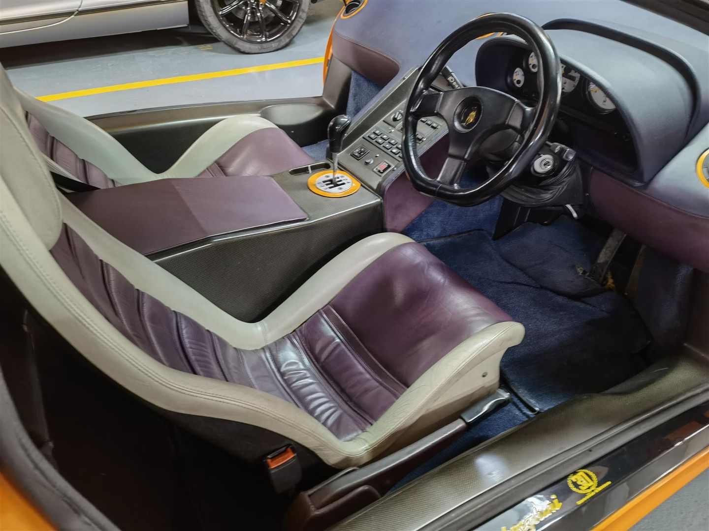 The car's weight was lowered by replacing the power glass side windows with fixed plexiglas (with a small sliding vent window as on many race cars) and removing luxury features such as the air conditioning, stereo, and power steering. Carbon fibre seats with 4-point race harnesses and a fire suppression system added to the race nature of the vehicle.