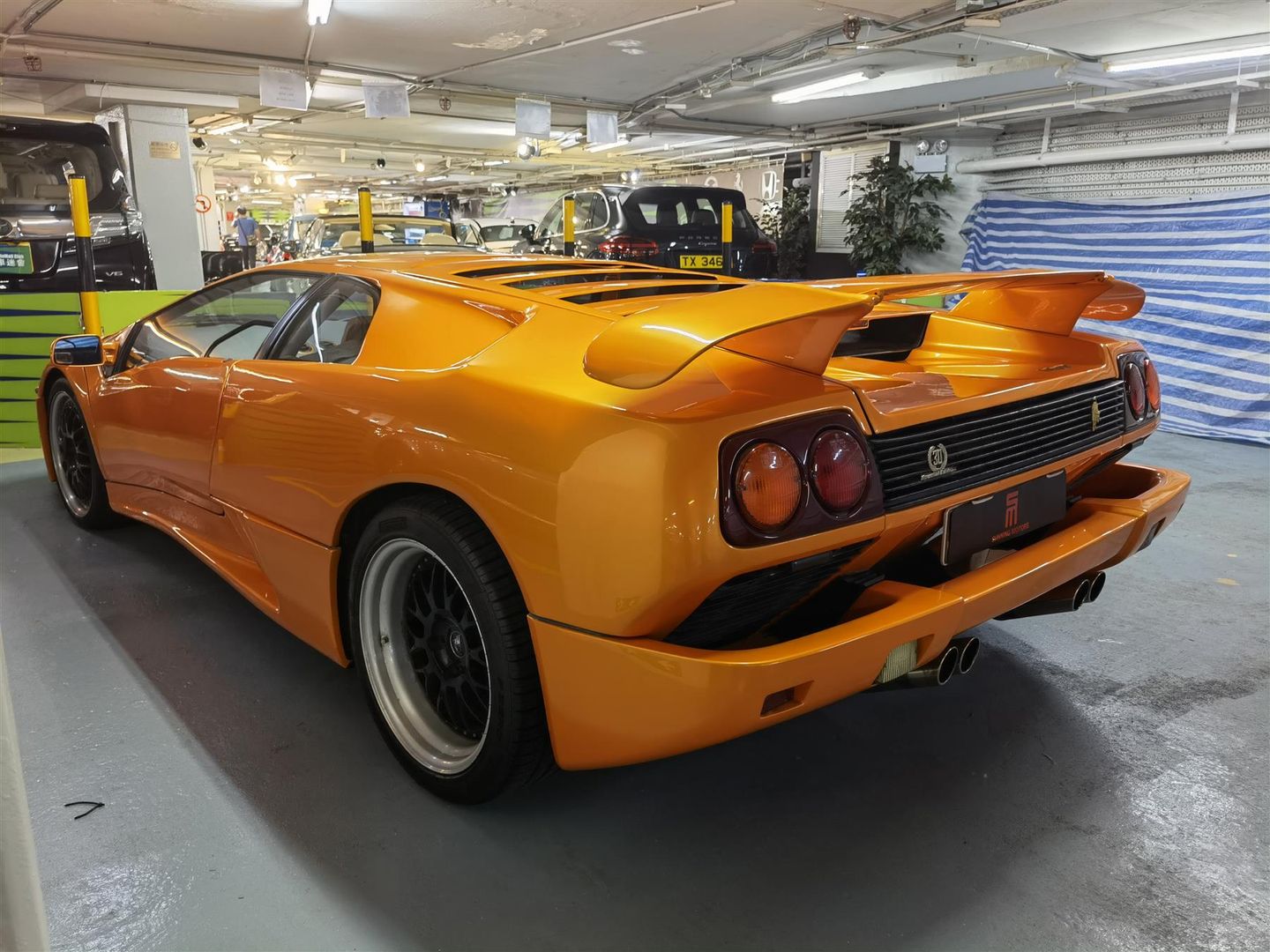 Only 150 SE30 models were built, and of these, about 15 were converted to "Jota" specification (although 28 Jota kits were produced). The "Jota" was a factory modification kit designed to convert the race-oriented SE30 into an actual circuit racer, albeit at the cost of street-legal operation. A revised engine lid with two ducts protruding above the roofline forced air into the intake system; a similar lid design would later be used on the Diablo SV model. With even more tuning of the Diablo's venerable V12 engine, it had a power output of nearly 603 PS (444 kW; 595 hp) and 639 N⋅m (471 lb⋅ft) of torque. The rear-view mirror from the interior was also removed because it was completely useless in conjunction with the revised engine lid, further adding to the race feeling of the car.