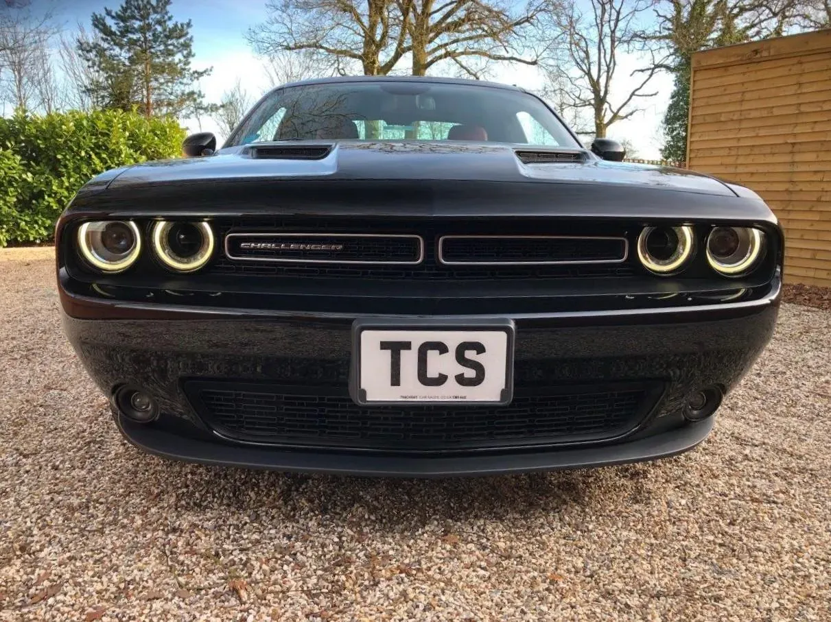 21-plate UK registered New; Unused Dodge Challenger SXT Plus 305BHP V6 24V DOHC Coupe (RWD) 8-speed Automatic (LHD) in Pitch Black clearcoat with Ruby Red leather interior. Registered new in UK, very low mileage (approx.. 500 miles), Clean USA CarFax, Full book pack, both remote keys, £270 per annum road tax, frugal V6 305bhp 24V engine capable of returning 25-35mpg, comprehensive warranty options available, fantastic rare head turner, a very comfortable daily driver!