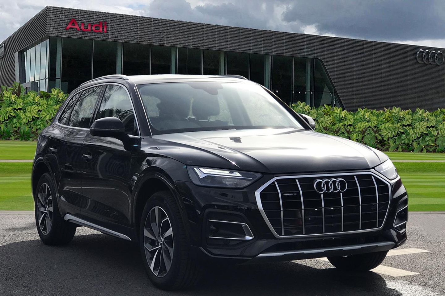 19" x 8.0J '5-arm rotor' design contrasting grey, partly polished alloy wheels with 235/55 R19 tyres, Comfort key in combination with anti-theft alarm system, Storage pack, Suspension system with damper control, Rear bench seat plus, Comfort key with SAFELOCK, Comfort centre armrest in front, Anti-theft alarm system, Audi sound system, Audi Phone Box with wireless charging,Acoustic front and rear parking sensor,Amazon alexa Integration,Audi connect safety and service (e-call),Audi drive select,Audi virtual cockpit plus with 12.3" screen and three different layout designs,Audi wireless smartphone interface,Automatic start-stop system with coasting functionality and efficiency programme,Cruise control + speed limiter,Electro - mechanical power assisted steering,MMI navigation plus with 10.1" touch screen,Mobile telephone preparation - bluetooth interface,Power tailgate,Reversing camera,Service interval indicator,Voice control system with Audi hotword activation "Hey Audi",2 USB charging ports,DAB Digital radio,Acoustic windscreen,Air inlets in matt titanium black with blades in matt aluminium silver,Aluminium roof rails,Auto dimming rear view mirror,Automatic headlight adjustment,Automatic headlights and windscreen wipers,Body colour bumpers,Body colour door mirrors,Chrome plated exhaust trims,Door sills in Selenite silver,Electric adjustable/heated/folding door mirrors,Front and rear electric windows,LED headlights and LED tail lights,Lower bumpers painted in contrast Manhattan grey,Matt selenite silver underbody protection,Matt twilight grey radiator grille with chrome vertical struts,Rear chrome trim strip below lights,Rear diffuser strip in selenite silver,Rear spoiler,Rear wiper,Roof bars,3 rear headrests,3 spoke multifunction leather steering wheel with shift paddles,40:20:40 split folding rear seat with rear centre armrest,Deluxe 3 zone electronic climate control,Door sills with aluminium inlays,Front centre armrest,Front/rear floor mats,Heated front seats,Height adjustable front head restraints,Height/reach adjustable steering column,ISOFIX child seat mounting and top tether,Manual seat adjustment with 4-way electric lumbar support,Removable luggage compartment floor,Silver cloth headlining,Sunvisors with vanity mirrors,Tool kit,Trunk roller cover,Twin leather upholstery + front sports seats,High gloss pack - Q5,LED interior light pack - Q5,3 point seatbelts on all seats,6 airbags - Driver, front passenger, curtain and side airbags,Electrically operated child locks on rear doors,Electromechanical parking brake,Electronic stabilisation control including ABS, ASR and EDL,Front passenger airbag deactivation,Hill descent control,Hill hold assist,Multi collision brake assist,Pop-up bonnet for pedestrian protection,Pre sense city,Seat belt force limiter,Seatbelt monitoring,Tyre pressure warning,Warning triangle and first aid kit,Anti theft alarm,Anti-theft wheel bolts,Keyless Go access/ignition system,Diesel particulate filter,Dynamic suspension,Quattro on demand,Aluminium rhombus inlay