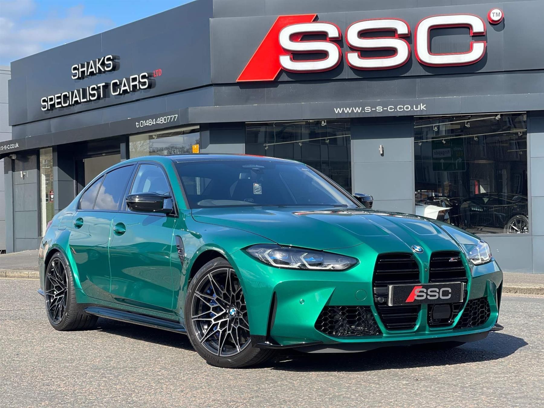 Shaks Specialist Cars Are Proud To Offer For Sale The All New G80 M3 Competition Finished In Isle Of Man Green With Black Extended Merino Leather. Fantastic Spec Inc: 19/20'' Forged M BiColour Alloys, Carbon Interior Trim, Comfort Pack, Visibility Pack, Technology Plus Pack, Heated Steering Wheel, Electric Bootlid, Comfort Access, Laser Lights, Driving Assistant Professional, Parking Assistant Plus, Drive Recorder, M Sport Differential, Head Up Display, Harman Kardon Surround Sound, Galvanic Controls, Sun Protection Glass, Electric Heated Seats With Memory, Adaptive Suspension, Power Folding and Auto Dimming Mirrors, M Seat Belts, DAB, Connected Pack Pro. This M3 Competition Is As New With Manufacturers Warranty.