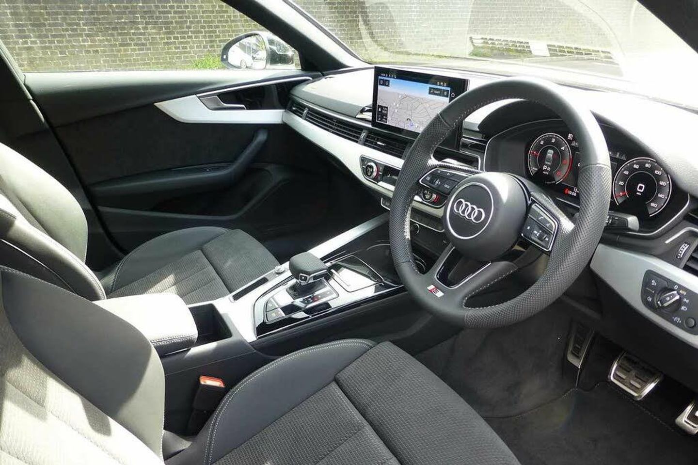 Audi connect safety and service (e-call), Audi drive select, Audi parking system plus with front and rear sensors, Audi smartphone interface, Audi virtual cockpit, Automatic start-stop system with coasting functionality and efficiency programme, Bluetooth interface, Electric boot lid release, Electromechanical power steering, MMI Navigation plus with MMI touch includes 10.1" high resolution colour MMI display, 3D map, Rear view camera, Voice control system, Sports suspension lowered by 23mm, 2 USB charging ports, 8 passive loudspeakers, DAB digital radio reception, Auto dimming rear view mirror, Body colour door handles, Body colour front spoiler lip, Body colour side sill trim, Body coloured door mirrors, Electrically folding auto dimming/adjustable/heated door mirrors with LED side indicators and kerb view function for passenger side, Grained matt black side air inlets with matt aluminium silver inlay, High beam assistant, Honeycomb structure radiator grille in grained matt black, LED headlights with LED rear lights + dynamic rear indicators + headlight adjustment and high beam, turning light + LED daytime running lights, Matt aluminium silver tailpipe trim, Rain and light sensors, S Line badges on the front wings, S line front and rear bumpers with side skirts, S Line rear diffuser in matt titanium black with trim strip in matt aluminium silver, Windscreen with acoustic glazing, 4 way electric lumbar support for driver and front passenger, 40/20/40 split folding 3 rear seat bench in 3 parts with rear centre armrest, Black cloth headlining, Black perforated leather gearknob, Contrast stitching on seats, steering wheel and gear lever gaiter, Deluxe 3 zone electronic climate control, Door sill trims with aluminium inlay, Front and rear head restraints, Front centre armrest, Heated front seats, Illuminated door sill trims with S logo, ISOFIX child seat mounting and top tether, Manual seat adjustment, Stainless steel pedals and foot rest, Tool kit, High gloss package - A4, LED Interior light pack - A4/S4, 3 rear seatbelts, 6 airbags - Driver, front passenger, curtain and side windows, Electronic Stabilisation Control (ESC) including ABS, ASR and EDL, Hill hold assist, Multi collision brake assist, Pop-up bonnet for pedestrian protection, Pre sense city, Seatbelt monitoring, Warning triangle and first aid kit, Anti theft alarm, Anti theft wheel bolts, Keyless Go, Matt brushed aluminium inlays, Tyre repair kit