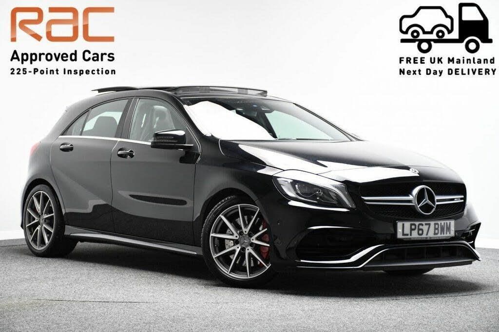 Here we have a stunning A45 in black with chrome exterior detailing, 18'' alloys, keyless entry, rear view camera, LED daytime running lights, LED headlights, front & rear parking sensors and privacy glass. AMG performance seats and interior in black half leather with red contrast stitching, red seatbelts, carbon effect dashboard with red air vent surround trim, Panoramic sunroof, Premium sound system, Satnav, Bluetooth audio/phone, DAB radio, USB, auto stop/start, air conditioning, AMG performance flat bottom multi-function steering wheel with paddle-shift, cruise control with variable speed limit, collision warning system with active brake intervention, sports suspension, active park assist, automatic headlights, tyre pressure monitor, drive mode select, front and rear electric windows, folding rear seats, headlining in black, smartphone integration pack, memory pack, AMG styling pack, mirrors pack and Illumination pack. 2 keys. 3-year Servicing and Lifetime MOT with our Warranty Package available. FREE UK Mainland Delivery, 225-point inspection, Extended Warranty, Virtual Test Drive & ??0 Deposit Finance Available. Zero deposit soft search finance available (15+ finance lenders) + 5 star customer reviews + (Google & Trustpilot) + UK's largest indoor showroom + 30 day money back promise + hundreds of cars in stock + fund and drive in under 1 hour + HPI clear + drive away insurance + RAC inspected & approved + RAC service plans and extended warranty available + free refreshments + car can be delivered to your door in 24 hours + click & collect + 100 foot Xbox screens & kids play area + free massage in our zero gravity chairs + take a selfie in our super cars + sell your car in 60 seconds (we will not be beaten on price) + open 7 days a week. www.thecargroup.co.uk 0161 797 7977 BL9 0NJ