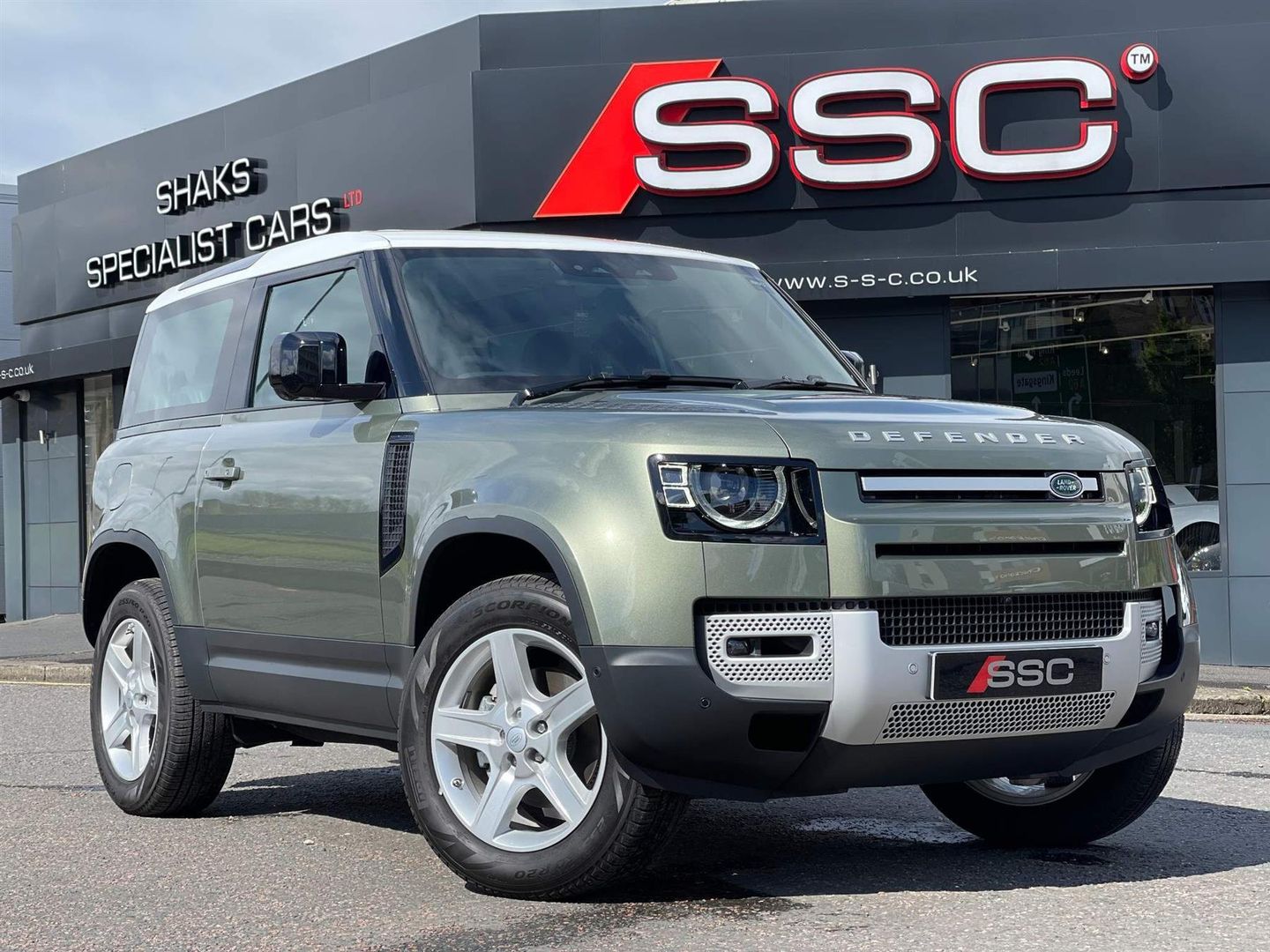 Stunning All New Defender 90 P300 SE Finished In Green With Black Taurus Leather and Woven Textile Interior. Fantastic Spec Inc: 20'' 5 Spoke Sparkle Silver Alloys, Meridian Sound System, Electric Heated Front Seats With Memory, Auto High Beam Assist, Touchscreen Navigation and Media System, Cruise Control, Cabin Lighting Pack, Water Wading, 3D Surround Camera, Lane Keep Assist, Premium LED Headlights, Smart View Rear View Mirror, Powerfolding Mirrors With Auto Dimming, Keyless Entry and Start, Blind Spot Assist, DAB, 4 Way Lumbar Support. This Defender Comes With Remainder Of Land Rover Warranty.