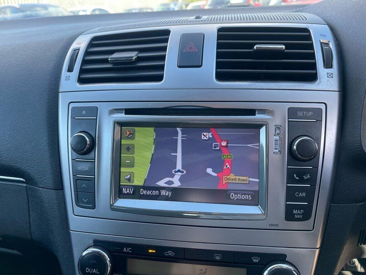 Bluetooth system, Cruise control, Dusk sensor, PAS, Reversing camera, Touch & Go nav with 6.1" multimedia touch screen + connect services, Trip computer, 5 three point seatbelts, Active front headrests, Active Traction Control (TRC), Brake assist function, Driver and passenger airbags, Driver and passenger side airbags, Drivers knee airbag, Electronic parking brake, Front and rear seatbelt reminder, Front curtain airbags, Passenger airbag deactivate switch, Rear curtain airbags, VSC with ABS and EBD, Alarm, Immobiliser, Remote control central locking, 6 speakers, CD player, Radio, USB connection, 5 height adjustable headrests, 60/40 split rear seats, Adjustable front seats, Centre rear armrest with through load facility, Dual zone climate control, Electric lumbar support, Front centre console with lidded storage, Gordale cloth upholstery, Isofix child seat preparation, Leather gear knob, Leather steering wheel, Rake/reach adjustable steering wheel, Steering wheel audio controls, Body coloured bumpers, Body coloured door handles, Body coloured door mirrors, Chrome garnish on boot, Chrome window surround, Daytime running lights, Electric door mirrors, Electric front windows, Electric rear windows, Electrochrome rear view mirror, Front fog lights, Front intermittent wipers, Heated door mirrors, Privacy glass, Rain sensor windscreen wipers, Rear wiper, Silver roof rails, Chrome air vent surrounds, Silver centre console, 17" Machine face finished alloy wheels, Temporary spare wheel, Diesel particulate filter