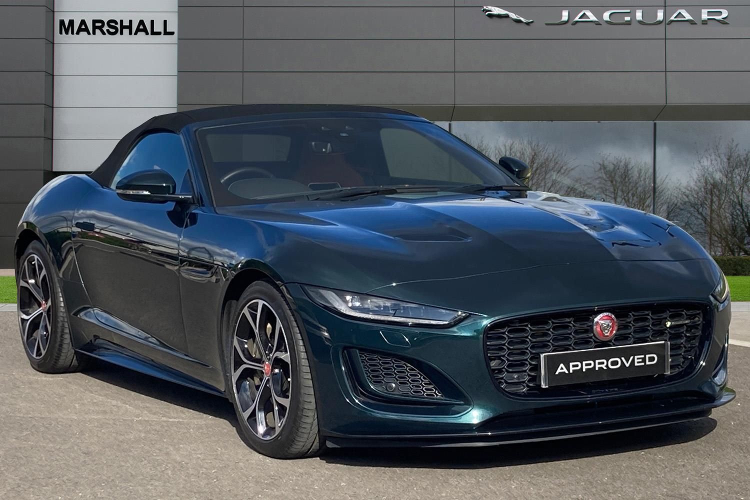Marshall Jaguar Ipswich are pleased to offer our stunning and Individual Jaguar F-Type P300 R-DYNAMIC CONVERTIBLE finished in BRITISH RACING GREEN with TAN WINDSOR Leather Performance Interior. This High Performance Sports Car comes with a HUGE Selection of Optional Extras such as 19" GLOSS BLACK & DIAMOND TURNED ALLOY WHEELS, CLIMATE PACK WITH HEATED STEERING WHEEL AND WINDSCREEN, WINDSOR LEATHER SEATS UPGRADE, FRONT PARKING AID, REAR CAMERA, SECURE TRACKER, BLACK EXTERIOR PACK. The F TYPE range offers sports cars that only Jaguar could create - effortless performance and precise agile handling, with everyday refinement and usability. Our helpful and attentive team at Marshall Jaguar Ipswich are on hand 7 days a week to help you find the perfect car to suits your needs. Our dedicated team can assist you whether you’re in our showroom for a browse, arranging test drives or providing you with a personalised video for you to view the car without even leaving the house. All Approved Used Jaguar Land Rover Approved vehicles undergo a comprehensive series of stringent tests and inspections, allowing you to buy with peace of mind. These checks include, 165 exacting checks to pass, reconditioning with Jaguar Land Rover original parts, history and mileage checks, 30 day exchange plan, minimum of 1 year Warranty with Roadside Assistance. We are proud to be part of The Marshall Motor Group which was established over a century ago and since then has grown into one of the UK’s largest motor groups. 10" touch screen, Android Auto, Apple CarPlay preparation, Bluetooth telephone connectivity, Boot entrapment release lever, Connected navigation pro, Cruise control + speed limiter, Driver condition monitor, Incontrol pro service, InControl remote premium, Interactive driver display, Lane departure warning system, Lane keep assist, PAS, Push button start, Rear view camera, Stop/start system, Traffic sign recognition with adaptive speed limiter, Trip computer, Audio remote control, Digital Audio Broadcast radio-DAB, InControl app, InControl protect, Auto dimming rear view mirror, Automatic headlights, Body coloured door mirror caps, Chrome exhaust finisher, Deployable boot lid spoiler, Electric front windows, F-Type badge, Flush exterior door handles, Headlight washers, Infra red reflective glass, LED tail lights, Quad outboard mounted exhaust pipes, R Dynamic badge, R-Dynamic exterior body kit, Rain sensing windscreen wipers, Solar attenuating windscreen, Switchable active exhaust, Tinted glass, Wind deflector, Bright metal foot pedals, Deployable front air vents, Front centre armrest, Front headrests, Jaguar sense, Low line cubby box, Lumbar support, Overhead console, Pollen filter, Power socket, Rain, Ice and snow mode, Twin front cupholders, USB with 12V socket in centre console, Online pack - F-Type, Smartphone pack - F-Type, 4 airbags in front, Anti-lock braking system (ABS), DSC - Dynamic Stability Control, Electronic brake force distribution, Electronic parking brake, Emergency brake assist, Emergency braking, Front/rear seatbelt pre-tensioners, Pedestrian contact sensing and deployable bonnet, Seatbelt reminder for driver and front passenger, Tyre pressure monitoring system, Deadlocks, Drive away door locking, Engine immobiliser, Locking wheel nuts, Perimetric and volumetric anti theft alarm, Remote central locking, Two stage unlocking, Valet mode, Open differential with torque vectoring by braking, Passive suspension