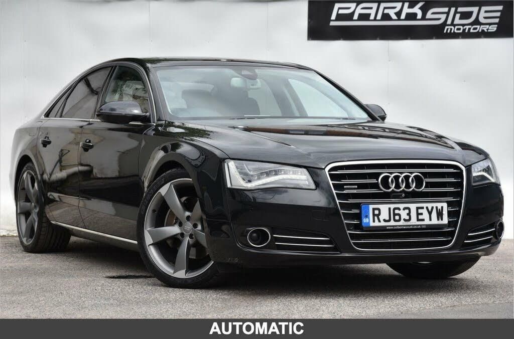 Power door closure, Audi lane change assistant, Adaptive cruise control with Stop and Go + pre sense front, 4 zone automatic climate control + air filtration, Electric tilt/slide sunroof, 'Lights On' Reminder warning buzzer, Audi hands free boot opening system, Audi parking system advanced with top view, Driver's information system, HDD sat nav system with DVD player, MMI 3G high and SD card slots, Power boot opening and closing, Remote fuel filler release, Service interval indicator, Servotronic speed related PAS, Voice control system, Diesel particulate filter, Audi music interface, DAB digital radio module, Adaptive Xenon plus headlights with LED day running lights, Aluminium trim strips framing side windows, Auto dimming and folding door mirrors, Auto dimming rear view mirror, Automatic headlight control system, Body colour bumpers, Body colour door mirrors and handles, Body colour side protection with aluminium trim strips, Break-in protection glass, Electric front windows, Electric rear windows with isolation switch, Electrically adjustable and heated door mirrors, Front fog lights, Headlight washers, Heated rear window with time switch, Heated windscreen washer jets, LED brake lights, LED headlights and high beam assist, Tinted glass, Twin exhaust pipes, Air quality sensor, Cooled glovebox, Door pockets with bottle holder, Dust/pollen filters, Electric adj front seatbelt height + memory, Electric front headrests, Electric front seats with lumbar adjust and memory, Front and rear cup/can holders, Front centre armrest/storage, Heated front seats, Height adjustable rear head restraints, Height/reach electric steering column with easy exit function, Humidity sensor, Isofix child seat preparation, Passenger footwell storage net, Rear centre armrest, Roof mounted sunglasses holder, Sunvisor with ticket holder, Sunvisors with illuminated vanity mirrors, Tool kit, Ambient lighting pack - A8, Light and rain sensor pack - A8, Luggage compartment pack - A8, 3 point seatbelts on all rear seats, ABS/EBD, Active front headrest system, ASR traction control, Driver and passenger airbags, EDL traction control, Electromechanical parking brake, ESP, First aid kit, Front passenger airbag deactivation, Rear child proof door locks, Side airbags, SIDEGUARD airbag system, Tyre pressure monitor, Warning triangle, Advanced key, Locking wheel bolts, Thatcham category 1 alarm + immobiliser, Aluminium interior trim