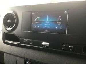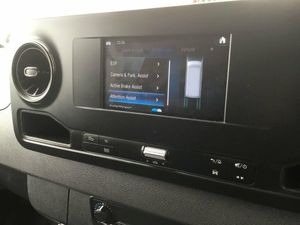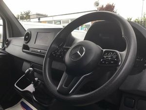 ASSYST - Flexible servicing system, Comfort overhead control panel, Communication module (LTE) for digital services, Cruise control, Digital clock, Outside temperature gauge, PAS, Rev counter, Speedometer, Terminal strip for electrical connection, Trip computer, 3 point inertia reel belt on all seats, Attention assist, Breakdown management, Crosswind assist, Drivers airbag, Jack, Mercedes-Benz emergency call system, Seat belt warning for driver's seat, Anti-theft alarm system, Double locking, Immobiliser, Remote central locking, VIN visible from outside, 2 speakers, Digital radio (DAB), USB connection, 2 sunvisors plus shaded windscreen centre, Ashtray, Cab headlining, Compartment under fold-up passenger seat, Front door pockets with bottle holder, Grab handle at load compartment sliding door partition, Height and reach adjustable steering wheel, Hinged cover for centre storage compartment, Interior shelf above windscreen, Load lashing rings, Locking glovebox, Multi function steering wheel, Pre-installation for switch panel, Storage compartment under cockpit, Adaptive brake lights, Daytime running lights, Electric front windows, Headlight assistant, Indicators in front door mirrors, Lights for left hand traffic, Longitudinal member reinforcement, Third rear brake light, 225/65 R16 Tyres, Resistance-optimised tyres, Spare wheel bracket below frame end, Summer tyres, ABS, Adaptive ESP, ASR traction control, Brake assist, EBD, ECO Start/stop function, Fuel filter with water separator, Hill start assist, Jump start contact, Particulate filter (DPF), Uprated 95Ah battery