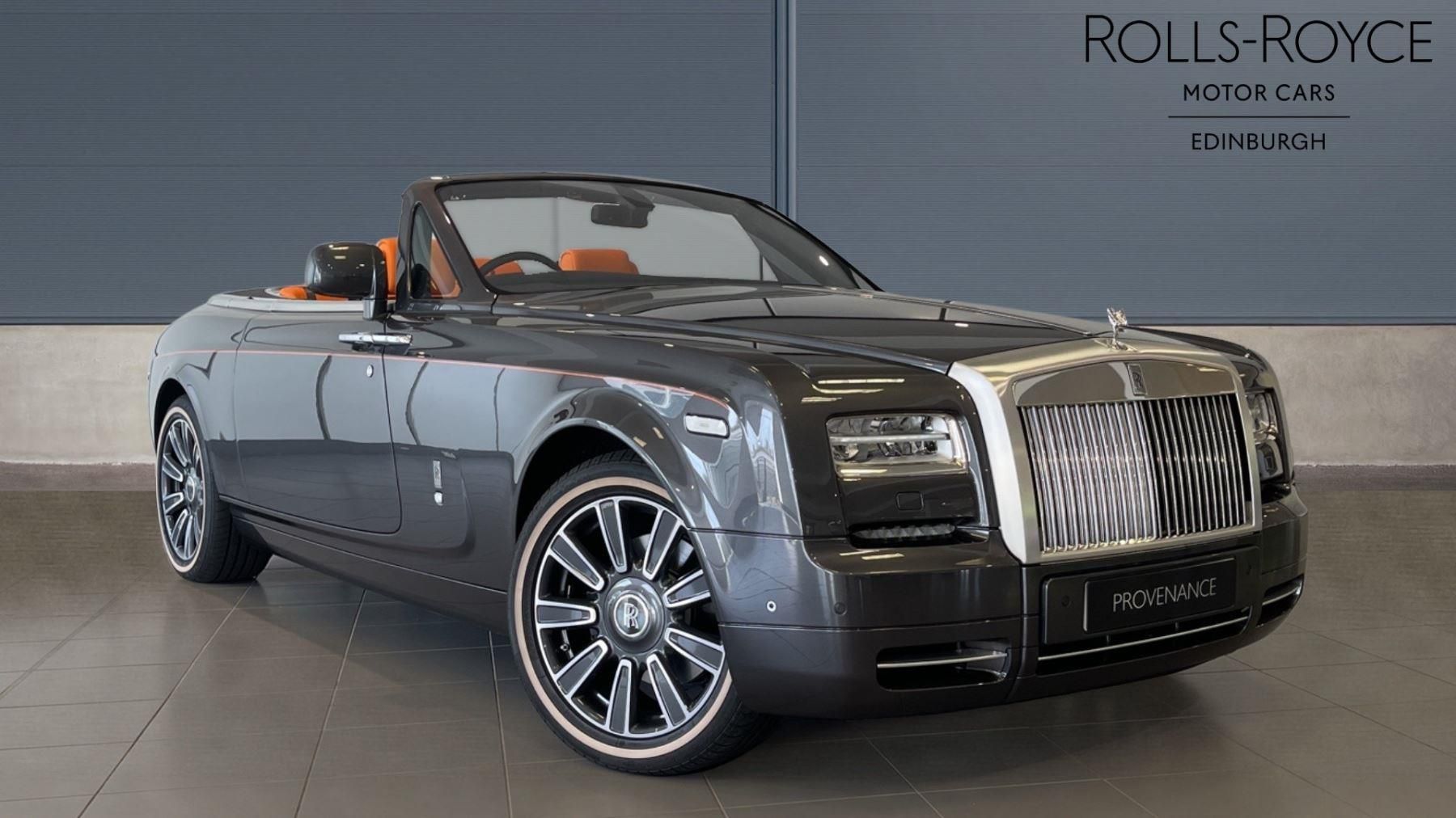 Roll-Royce Edinburgh presents this 1 owner, 2016 - 66 plate Phantom Drophead with only 875 miles and a huge individual spec - 1 of 1. This drophead is finished in Gunmetal with a Mandarin interior. This really is a huge opportunity to own this rare car with super provenance and history. Goodwood have confirmed that this is a 1 of 1 vehicle. This vehicle was sold new from our Edinburgh dealership and comes with a hugely bespoke specification. The spec includes lounge seats, camera system, bespoke interior and exterior package, lambswool floormats, RR Monogram on headrests, exterior coachline in Mandarin, full metal facia, 21 inch part polished 9 spoke alloys with pinstripe tyres, visible exhaust, silver exterior hood, heated rear seats, leather detailing pack, bespoke clock, up lit Spirit of Ecstasy. This Drophead would come with 24 months Rolls-Royce warranty and service inclusive. Contact the team for your personalised video or make an appointment to see just how good this Drophead look sin the flesh. CLICK-COLLECT-DRIVE: Reserve online today and collect it safely at our dealership or we'll deliver to your door. To ensure we keep you and our associates safe as possible during these difficult times we are operating social distancing procedures, and fully Covid secure..