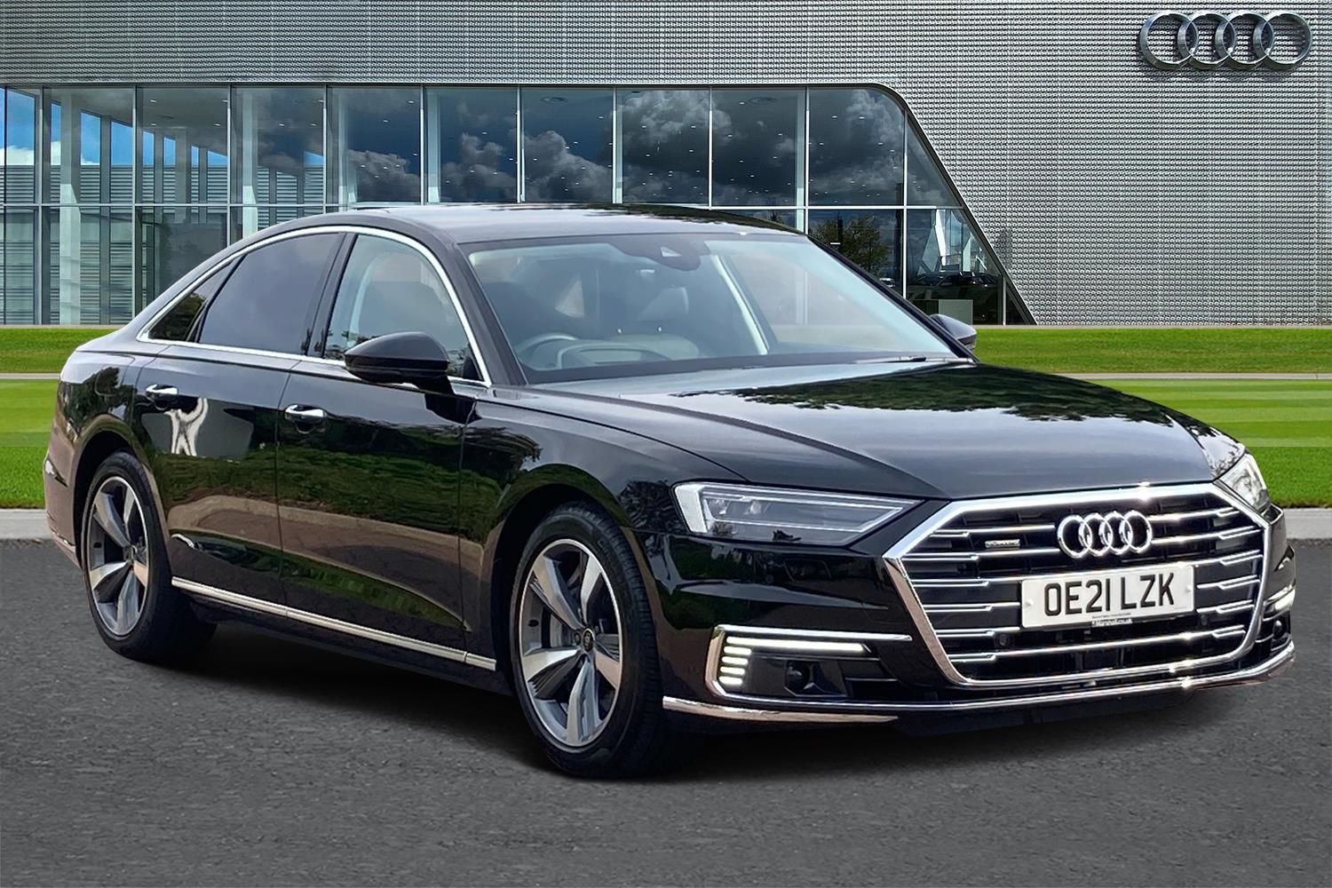 'Lights On' Reminder warning buzzer, Adaptive cruise control with speed limiter, Audi connect safety and service (e-call), Audi drive select, Audi parking system plus with front and rear sensors, Audi phone box with wireless charging, Audi virtual cockpit, Audi wireless smartphone interface, Camera based traffic sign recognition, Electro - mechanical power assisted steering, Head up Display, MMI navigation plus with MMI touch + Twin touch screens with haptic feedback, MyAudi app connection for Audi e-tron charging service, Operating buttons in black, glass look with haptic feedback, Power door closure, Power operated tailgate, Rear view camera, Remote fuel filler release, Service interval indicator, 3 pin 10 amp domestic charging cable, 65 litre fuel tank, 8 speed transmission with hill hold assist, Adaptive air suspension, Hybrid propulsion system, Quattro all wheel drive with self locking centre differential, Type 2 mode 3 32 amp charging cable, Type 2 socket for AC charging, Audi music interface, Audi sound system, DAB digital radio module, DVD System, Premium MMI radio plus, USB connection, Audi space frame, Auto dimming rear view mirror, Body colour bumpers, Body colour door handles, Body colour exterior mirror housings, Body colour side protection with aluminium trim strips, Chrome exterior styling, Electric drive specific light signature, Electric front windows, Electric rear windows with isolation switch, Electrically adjustable heated folding + automatically dimming exterior mirrors with memory function and integrated LED indicators, Heat insulating glass in side and rear windows, Heated rear window, Heated windscreen washer jets, High beam assist, LED brake lights, LED daytime running lights, LED Headlights, Side skirts, 3 seat rear bench with centre armrest, 4 way electric lumbar support for driver and front passenger, 4 zone control automatic air conditioning, Centre console with cupholders, Climate controlled seats, Comfort centre armrest, Door armrest with storage, Door pockets with bottle holder, Driver and front passenger side sunvisors with illuminated vanity mirrors, Dust/pollen filters, Electric front seats with memory function, Front/rear floor mats, Glove compartment cooling, Heated front seats, Height/reach electric steering column with easy exit function, Isofix child seat mounting points on outer rear seats, Leather gearknob, Passenger footwell storage net, Pre-entry climate control, Reading lights, Rear headrests, Roof mounted sunglasses holder, Valcona leather upholstery with comfort front seats, Connect package plus - A8, High gloss styling pack - A8, LED ambient interior lighting pack - A8, 3 point seatbelts on all rear seats, ABS/EBD, Acoustic vehicle alerting system, Active front headrest system, ASR traction control, Audi pre sense basic, Audi pre sense front, Driver/Front Passenger airbags, EDL traction control, Electromechanical parking brake, ESP, Extended pedestrian protection measures, Front and rear side airbags with head airbag system, Front brake discs, callipers painted black, Front passenger airbag deactivation, Rear brake discs, callipers painted black, Rear child proof door locks, Seatbelt reminder + electric contact in buckle + advanced safety equipment, Tyre pressure warning light, Warning triangle and first aid kit, Advanced key, Anti theft alarm tow away protection, Anti-theft wheel bolts and wheel loosening detection, Locking wheel bolts, Remote central locking, Dark matt brushed aluminium lower inlays, Tyre repair kit