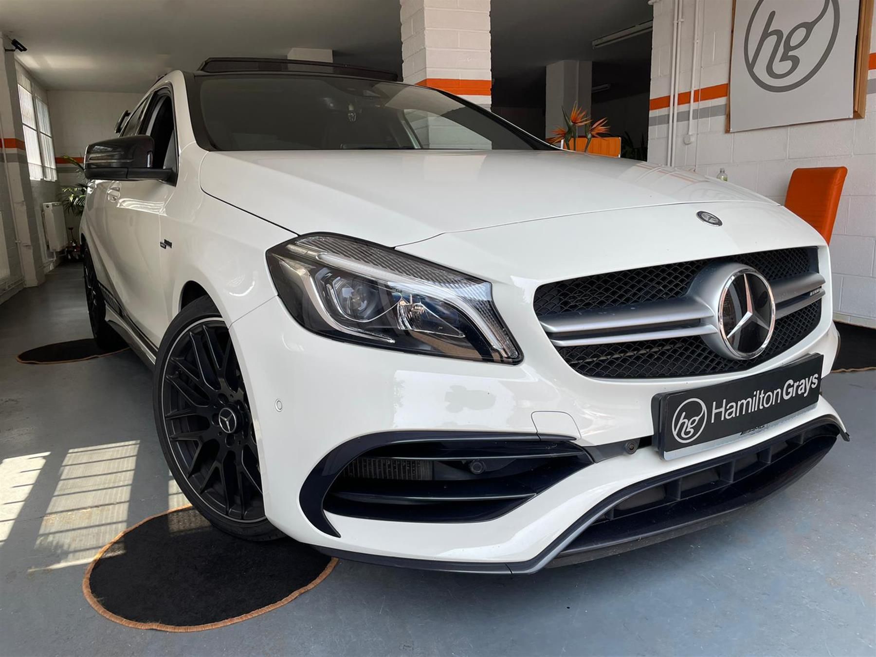2017 (66) Mercedes-Benz A Class 2.0 A45 AMG (Premium) SpdS DCT 4MATIC. Cirrus White / Interior in Black Leather / Alcantara. 41k