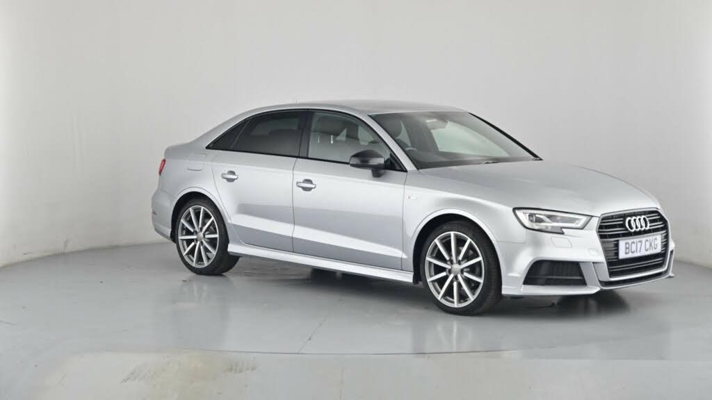 Audi connect,Audi drive select,Audi smartphone interface,Bluetooth interface,Colour driver's information system display,Electro-mechanical PAS,SD card based satellite navigation system,Service interval indicator,Voice control system,2 USB ports,Audi music interface,Aux-in socket,CD player,DAB Digital radio,MMI radio plus with 7" colour MMI screen and MMI controller,Automatic lights and wipers,Black door mirrors,Black rear diffuser,Body colour roof spoiler,Chrome exhaust tailpipes,Electric operated/heated door mirrors,Front and rear electric windows,Heated rear window,Heated windscreen washer jets,LED daytime running lights,Privacy glass,S Line body styling,3 adjustable rear headrests,3 spoke flat bottomed multi-function leather steering wheel,4 lashing points to secure luggage,Adjustable front armrest,Black cloth headlining,Driver/passenger sunvisors,Dual zone electronic climate control,Front and rear interior lights with delay,Front sports seats,Height/depth adjustable steering column,Illuminated door sills,Illuminated glovebox,ISOFIX child seat preparation+airbag deactivation,Jack and tool kit,Stainless steel pedals,Storage compartment in centre console,Storage compartments in doors,Storage under driver's seat,Black styling pack - A3/S3,LED interior light pack - A3/RS3,Non smoking pack - A3,Storage and luggage pack - A3/RS3,3 point seatbelts on all seats,ABS/EBD,ASR,Curtain airbags,Driver and passenger side airbags,Driver/Front Passenger airbags,Drivers knee airbag,EDL,Electromechanical parking brake,ESC - Electronic Stability Control + traction control,Front passenger airbag deactivation,Seatbelt warning,Tyre pressure warning,Warning triangle and first aid kit,Anti theft alarm,Anti-theft wheel bolts,Immobiliser,Remote control central locking,Aluminium air vent surrounds,Aluminium trim elements,Matt brushed aluminium inlays,18" 10 spoke design alloy wheels in matt titanium look with diamond cut finish