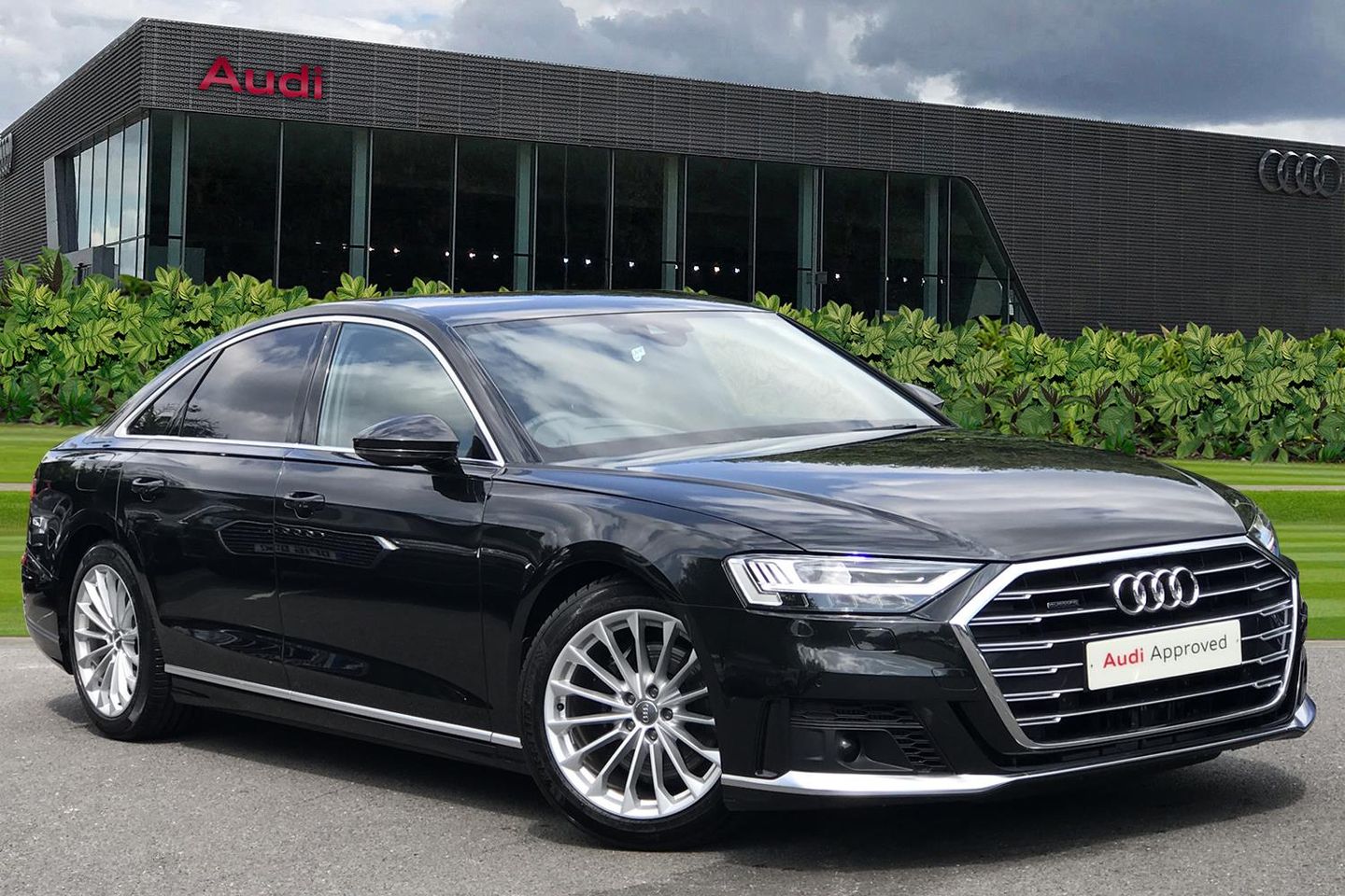 19" x 9.0J '15-spoke' design cast aluminium alloy wheel, Operating buttons, black glass , Lower inlays in dark Matt brushed aluminium, Privacy glass, Front Sport seats, Acoustic double glazing, S line package, Sport Exterior Pack, Model and technology designation at rear, Black cloth headlining, HD Matrix LED headlights, LED rear combination lamp, Headlight washer system,'Lights On' Reminder warning buzzer, Adaptive cruise control with speed limiter, Audi connect safety and service (e-call), Audi drive select, Audi parking system plus with front and rear sensors, Audi phone box with wireless charging, Audi virtual cockpit, Audi wireless smartphone interface, Camera based traffic sign recognition, Colour driver's information system display, Electro - mechanical power assisted steering, Head up Display, Lane departure warning including emergency assist, MMI navigation plus with MMI touch + Twin touch screens with haptic feedback, Operating buttons in black, glass look with haptic feedback including extended aluminium look, Power door closure, Power operated tailgate, Rear view camera, Remote fuel filler release, Service interval indicator, 24 litre AdBlue tank, 48V Mild hybrid technology, 8 speed transmission with hill hold assist, Adaptive air suspension, Diesel particulate filter, Quattro all wheel drive with self locking centre differential, Audi music interface, Audi sound system, DAB digital radio module, DVD System, Premium MMI radio plus, USB connection, Acoustic double glazing, Audi space frame, Auto dimming rear view mirror, Automatic headlight control system, Body colour bumpers, Body colour door handles, Body colour exterior mirror housings, Body colour side protection with aluminium trim strips, Electric front windows, Electric rear windows with isolation switch, Electrically adjustable heated folding + automatically dimming exterior mirrors with memory function and integrated LED indicators, HD matrix healights with LED rear lights + dynamic rear indicators, Heat insulating glass in side and rear windows, Heated rear window, Heated windscreen washer jets, High beam assist, LED brake lights, LED daytime running lights, Privacy glass, Reverse activated kerb-view adjustment on passenger's door mirror, Side skirts, Sport exterior styling, Sports bumpers, 2 zone automatic air conditioning, 3 seat rear bench with centre armrest, 4 way electric lumbar support for driver and front passenger, Centre console with cupholders, Climate controlled seats, Comfort centre armrest, Door armrest with storage, Door pockets with bottle holder, Driver and front passenger side sunvisors with illuminated vanity mirrors, Dust/pollen filters, Electric adj front seatbelt height + memory, Electric auxiliary air heater, Electric front seats with memory function, Front/rear floor mats, Glove compartment cooling, Heated front seats, Height/reach electric steering column with easy exit function, Isofix child seat mounting points on outer rear seats, Leather gearknob, Passenger footwell storage net, Reading lights, Rear headrests, Roof mounted sunglasses holder, Valcona leather upholstery with front sports seats in diamond quilted with S logo, Connect package plus - A8, High gloss styling pack - A8, LED ambient interior lighting pack - A8, 3 point seatbelts on all rear seats, ABS/EBD, Active front headrest system, ASR traction control, Audi pre sense basic, Audi pre sense front, Driver/Front Passenger airbags, EDL traction control, Electromechanical parking brake, ESP, Extended pedestrian protection measures, Front and rear side airbags with head airbag system, Front brake discs, callipers painted black, Front passenger airbag deactivation, Rear brake discs, callipers painted black, Rear child proof door locks, Seatbelt reminder + electric contact in buckle + advanced safety equipment, Tyre pressure warning light, Warning triangle and first aid kit, Advanced key, Anti theft alarm tow away protection, Anti-theft wheel bolts and wheel loosening detection, Locking wheel bolts, Remote central locking, Dark matt brushed aluminium lower inlays
