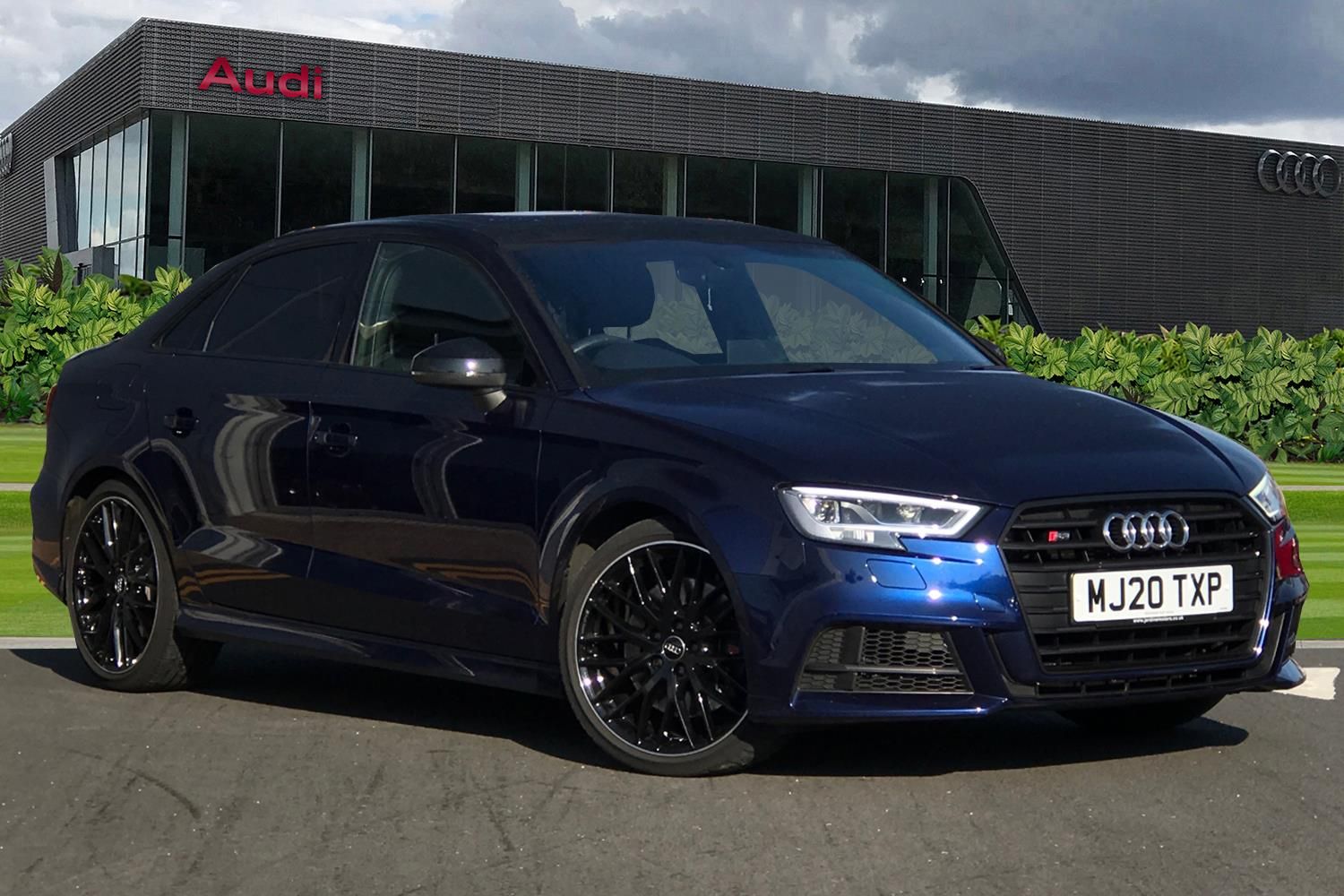 Online service, without OCU, with head unit coding, without engine immobilizer interconnection, With Connect package 3, Premium radio (Gen2), Privacy glass, Technology pack advanced, S Line Plus Identifier, Audi Beam - Front door puddle illumination, Panoramic glass sunroof, Titanium Black appearance package Audi exclusive, 19" x 8.0J '10-Y-spoke' design Audi Sport alloy wheels in gloss black, diamond cut finish with 235/35 R19 tyres, Black door mirror housing, MMI Navigation plus with MMI touch, Audi virtual cockpit, Bang & Olufsen Premium Sound System, Audi phone box/wireless charge,Audi connect, Audi smartphone interface, Automatic start/stop system, Bluetooth interface, Colour driver's information system display, Instrument dials with S3 logo, Progressive power assisted steering, SD card based MMI navigation, Service indicator, Voice control system, Audi magnetic ride, S sports suspension, 2 USB interfaces and Aux-In jack, Bang and Olufsen sound system, CD player, DAB Digital radio, MMI radio plus with 7" colour MMI screen and MMI controller, Two SDXC card slots, Audi Beam uses LEDs to project the Audi Sport logo, Auto dimming rear view mirror, Automatic lights and wipers, Black door mirrors, Body colour roof spoiler, Dual branch oval twin exhaust tailpipes in chrome finish, Electrically adjustable and heated door mirrors with integrated LED side indicators, Front and rear electric windows, Headlight washers, Heated rear window, Heated windscreen washer jets, Model and engine designation badges at rear, Privacy glass - dark tinted rear and rear side windows from B-pillar backwards, S3 Front bumper, 3 adjustable rear headrests, 3 spoke flat bottomed high multi-function leather sport steering wheel with gearshift paddles, 4 lashing points to secure luggage, 60/40 split folding rear seat, Adjustable front centre armrest, Driver/passenger sunvisors, Dual zone electronic climate control, Front and rear interior lights with delay, Front/rear floor mats, Heated front seats, Height/depth adjustable steering column, Illuminated door sill trims with S logo, Illuminated glovebox, Illuminated luggage compartment, ISOFIX child seat mounting and Top Tether with front passenger airbag deactivation, Manual height adjustable front seats, Stainless steel pedals, Storage compartments in doors side trims, centre console and under front drivers seat, Tool kit, Black styling pack - A3/S3, LED interior light pack - A3/RS3, Non smoking pack - A3, Storage and luggage pack - A3/RS3, 3 point seatbelts on all seats, ABS/EBD, Active front headrests, Airbags - front driver/passenger, front & rear side, curtain, drivers knee, ASR, EDL, Electromechanical parking brake, ESC - Electronic Stability Control + traction control, Hill hold assist, Predictive pedestrian protection, Seatbelt warning, Tyre pressure warning, Warning triangle and first aid kit, Anti theft alarm, Anti-theft wheel bolts, Immobiliser, Remote control central locking, Aluminium air vent surrounds, Aluminium trim elements, Matt brushed aluminium inlays, Tyre repair kit