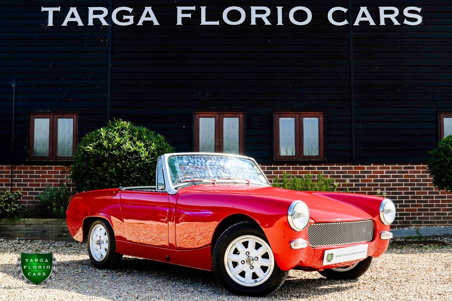 MG Midget Roadster registered February 1965 finished in Red with Black Leather Interior. Comprehensive Nut-and-Bolt Restored 1965 MG Midget with only 8250 miles since restoration. 13'' Alloy Wheels with White Faces and Polished Lips | Black Leather Seats | Red Seat Belts | Wooden Three-Spoke Steering Wheel with Alloy Inserts | Alloy Front Grille | Removed Bumpers | DVD Detailing the Restoration Work | Tonneau Cover | Original Dashboard | Original Instrument Gauges | Original Handbrake and Gearshifter |