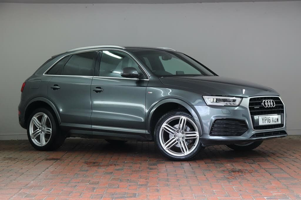 Full Audi History | Sat Nav-*Full Audi service history (2 services)* This Q3 is finished in S Line exclusive Daytona Grey pearl - this colour looks absolutely stunning with Audi's versatile Quattro all wheel drive, fantastic Euro 6 compliant 2.0 TDI engine, 7 speed S Tronic automatic transmission & exclusive S Line Plus specification - includes high performance LED headlights - these provide fantastic all weather visibility, beautifully sculptured S Line Plus sports seats trimmed in luxurious leather upholstery with alcantara inserts & unique S Line embossing (front seats also benefit from lumbar support for added comfort), Audi Parking System Plus (adds front & rear parking sensors with visual display), cruise control, Audi's beautiful S Line bodystyling package (adds re-profiled front & rear bumpers, sculptured side sills, unique S Line badges & stunning 19 inch alloy wheels), multifunction S Line steering wheel trimmed in leather, convenient electric powered tailgate, dual zone automatic climate control, Audi Drive Select (adds configurable driving modes optimising performance, comfort or fuel efficiency at the touch of a button), electric front & rear windows, Audi Concert Radio (adds a beautiful 6.5 inch full colour display, bluetooth connectivity, voice control, dab digital radio, CD player & an 8 speaker Hi-Fi), isofix child seat anchor points & 60:40 split/fold rear seats. FOW is the largest and most trusted Car Supermarket in the North West with locations in Winford, Cheshire and Trafford, Ma...