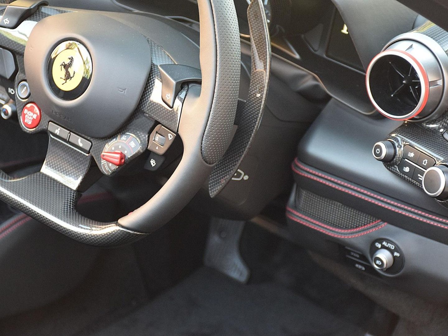 Carbon Fibre Driver Zone + LEDS,Carbon Fibre Central Bridge,Carbon Fibre Dashboard Inserts,Carbon Fibre Outer B Post Trim,Carbon Fibre Side Air Splitters,Carbon Fibre Rear Boot Trim,20" Forged Diamond Corsa Alloys,Scuderia Wing Badges,Suspension Lifter,Passenger Display,Yellow Brake Calipers,Full Electric Seats,Rear Parking Camera,Front And Rear Sensors,Italian Flag On Engine Bay,Red Stitching,Red Dashboard Ring On Vents,Cavallino Stitched Into Headrests,AFS Lighting System,Floor Mats With Logo,Bonnet Upper Insert In Matt Black,High Power HiFi,Yellow Rev Counter,VAT Qualifying Vehicle,Balance Of Service Plan Until May 2028