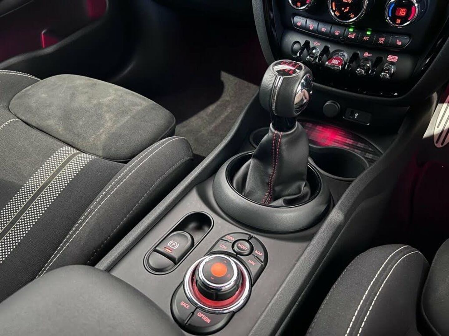 Active Guard incl speed limiting and lane departure functions with auto steering, and front collision warning with brake intervention, Automatic start/stop function with brake energy recuperation, Compatible mobile phone bluetooth with audio streaming, Electro-mechanical speed dependant steering assistance, Instrument cluster, Mini E-call, MINI TeleServices, On board computer, Rear parking distance control, Alarm system with tilt sensor, monitoring doors, bonnet interior and tailgate, Auto drive away locking, Deadlocking function, Electronic vehicle immobiliser, Locking wheel bolts, Start/stop toggle with keyless go, Double Vanos system, Fully variable valve control, High precision injection, Performance Control, Excitement pack - Clubman, Navigation pack - Clubman, 2 tone horn, 3 point seatbelts on all seats, 6 Airbags - front, side, head and seat belt tensioners, Anti-lock braking system (ABS), DSC - Dynamic Stability Control, Electronic handbrake, Front and rear disc brakes, Tyre pressure monitoring system, FM tuner and DAB digital radio, 12V Accessory socket in centre console, 360L luggage compartment capacity, 4 lashing eyes in luggage compartment, 60/40 split folding rear seat, Anthracite headlining with grab handles and clothes hooks, Chrome interior highlights, Cupholders, English handbook, Glove compartment, Height and length steering column adjustment, Interior lighting with 12 basic colours selectable via toggle switch in roof, Isofix rear child seat preparation, John Cooper Works perforated leather steering wheel with contrast stitching in chilli red and John Cooper Works logo, Leather gearshift lever and handbrake gaiters, LED reading lights, vanity mirror lights, front foot well light and spotlight on front seats, Manual air conditioning, Mechanical seat adjustment, driver seat height adjust, forward/back and front seats backrest, Multifunction steering wheel, Storage compartments in doors, Sunvisors with vanity mirrors, Toolkit, Body coloured fuel filler cap, Door sill strips, Dynamic brake lights, Electric windows, Heated rear window, Heated windscreen washer jets, John Cooper Works - aerodynamic kit (front and rear apron, spoiler), front and rear sport bumpers and part-painted side sills with door sill finishers, John Cooper Works rear spoiler, Left exhaust tailpipe with chrome finisher, Model logo, Model logo on rear doors, Radiator grille, Rain sensor with auto headlights, Rear fog lights, Rear window wiper, Side scuttle panel with integrated indicator, Split rear doors, Sun/heat protection glass, White indicator lenses, Comfort Pack, Heated Front Windscreen, Roof and Mirror Caps - Black, MINI Driving Modes, Moonwalk Grey, Darkened Rear Glass, 19in Alloy Wheels - John Cooper Works Course Spoke