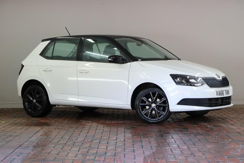 PAS,Service interval indicator,Exterior temperature gauge,Bluetooth system,Maxi dot trip computer,Front assistant collision mitigation,SmartLink,Auxiliary socket for external MP3 player,DAB Digital radio,Electric front windows,Heated rear window,Intermittent rear wash/wipe,Body colour door handles,Body colour bumpers,Height adjustable headlamps,Electrically adjustable and heated door mirrors,Tinted rear windows,Chrome grille surround,Tinted windscreen,LED daytime running lights,Height/reach adjust steering wheel,Cloth upholstery,Interior light with delay,Driver + passenger vanity mirrors,Height adjustable driver's seat,Pollen filter,Luggage load hooks,Height adjustable front headrests,Leather gearshift,2 height adjustable rear headrests,Leather handbrake,Front reading lights,3 spoke leather steering wheel,Rear courtesy light,Two rear outer seat isofix location points,Height adjustable passenger seat,Boot stowage box,Cargo area storage tray,60/40 split folding rear seat,Folding grab handles,1.5L bottle holder in front door panels,Ticket holder,Rear storage trays,Storage compartment under front seats,Lower glovebox cover,Chrome Pack - Fabia,Arkamys surround sound pack - Fabia,ABS,Driver and passenger airbags,Front seatbelt pretensioners,Driver and passenger side airbags,Seatbelt warning,EDS,Passenger airbag deactivate switch,Curtain airbags,HBA (Hydraulic Brake Assist),3x3 point rear seatbelts,Tyre pressure monitor,ESC with ASR,Immobiliser,Remote central locking,Alarm with interior monitoring