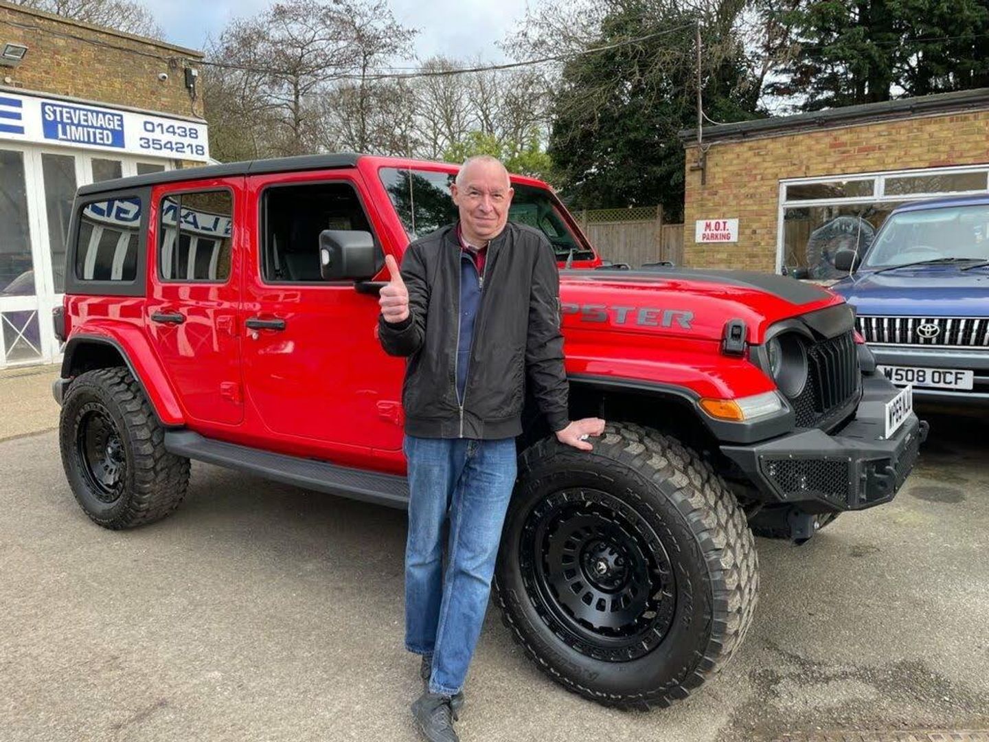 JEEPSTER front bumper with LED Inserts, Quilted Black Leather Interior with Heated Front Seats, 2 inch Lifted Suspension - Drives Beautifully, JEEPSTER Quad-pipe Sports Exhaust Black Chrome Finish, JEEPSTER Front Grille - with option to have original 7 slot grille, 20 inch Satin black alloy wheels with 35 inch M/T tyres, Trail rail management system pack - Wrangler, Pastel - Firecracker red, Parkview rear backup camera, Parksense rear park assist system, Android Auto, Apple car play, Cruise control, Tubular side steps, LED ambient lighting, Headlamp levelling, Premium LED headlamps, Daytime running lamp system, Round LED front fog lamps, LED tail lamp, Auto dimming rear view mirror, Isofix child seat preparation, Uconnect 8.4" with navigation, Climate control, Alpine premium audio system with subwoofer, 8 speakers, Deep tint sunscreen glass, Exterior temperature gauge, Instrument cluster with 7" colour TFT Display, Power Steering, Trip computer, Uconnect live - Europe, Vehicle information centre, Keyless go with 'push to start' button, Locking fuel filler cap, Premium security alarm, Active speed limit assist, Steering wheel mounted audio controls, USB port, 12V auxiliary power outlet in centre console, 12V auxiliary power outlet in rear, 2 way manual adjustable drivers lumbar support, 4 way manually adjustable passenger seat with height, reach,till and backrest, 6 way manually adjustable drivers seat, 60/40 split folding rear seat, Cargo compartment floor mat, Centre console storage, Front centre armrest, Front headrests, Illuminated front cupholders, Leather wrapped steering wheel with shift knob, Lockable glovebox, Rear compartment storage system, Rear headrests, Rear luggage cover, Reclining front seats, Storage nets, Storage trays, Sunvisors with illuminated vanity mirrors, Tilt adjustable steering column, Automatic headlights, Black door mirrors, Emergency response assistance system, Body coloured fender flares, Front fog lights, Headlamp off time delay, Power adjustable heated door mirrors, Power front windows with one touch, Rear fog lamps, Tow hooks, Windshield wipers with intermittent and variable, Full size spare wheel, 3x3 point rear seatbelts, ABS, Driver / front passenger multi stage airbags, Electronic stability control, Front side airbags, Hill descent control, Hill start assist, Traction control, Tyre pressure monitoring warning lamp