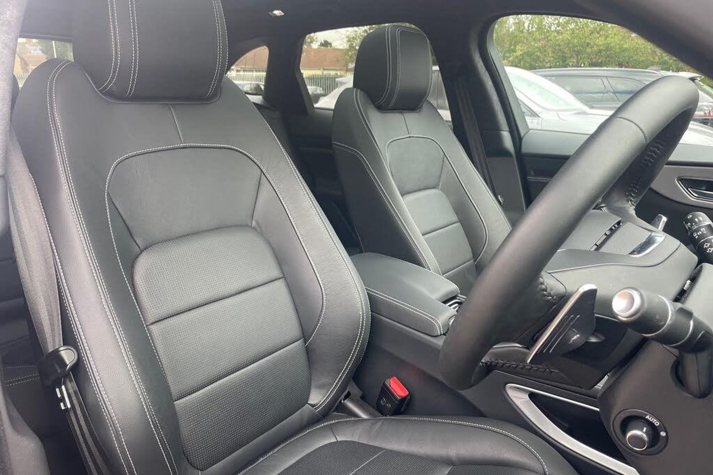 Ex Jaguar Management, Sport seats, 20'' Alloys - 5 split-spoke 'Style 5031'¸ Grey¸ Diamond Turned finish, Cold Climate Pack, Fixed Panoramic roof, Keyless Entry, Meridian(TM) Sound System, Privacy glass, Xenon headlights with LED signature, Gloss Black roof rails, Memory Package, Auto-dimming interior rear view mirror, Body-coloured door mirror caps, Cruise Control and Speed Limiter, Emergency Braking, Front fog lights, Headlight power wash, Heated windscreen, JaguarVoice system, Navigation Pack (Europe), Stop/Start, Touch-screen navigation system, 'R-Sport' branded soft grain leather steering wheel, 10 inch Touch Pro, 18-way electric front seats, 18-way Electric Front Sport Seats with Driver Memory, 8-speed Automatic Transmission, Ambient Interior Lighting, Analogue Dials with Central TFT Display, Android Auto(TM), Apple CarPlay(R), Auto-dimming¸ power-fold¸ heated door mirrors with memory and approach lights, Digital Audio Broadcast (DAB) radio, Double locking, Driver Condition Monitor, Driver seat memory, Forward-facing camera, Front and Rear Parking Aid, Heated front and rear seats, Illuminated metal treadplates with Jaguar script, InControl Apps, InControl Pro Services and Wi-Fi Hotspot, InControl Protect, InControl Remote Premium (subscription required), InControl Secure Tracker (subscription required), Intrusion Sensor, Lane Keep Assist, Locking wheel nuts, Navigation Pro, Open Differential with Torque Vectoring by Braking, Passenger seat: power fore/aft/height/tilt/exit, Passive suspension, Power Pack 15, Powered tailgate / bootlid, Rain sensing windscreen wipers, Rear Camera, Satin Chome Gearshift Paddles, Traffic Sign Recognition and Adaptive Speed Limiter, Two-zone climate control, Tyre Pressure Monitoring System (TPMS), Vehicle protection: CAT 1, Winter/Dynamic mode, 'R-Sport' front bumper, 'Taurus' grain PU console, 4-way lumbar + bolster adjustment, 40:20:40 split fold rear seat, Additional power sockets, All-Wheel Drive (AWD), Body-coloured 'R-Sport' door claddings with Satin Black finishers, Bright metal pedals, Centre console storage surround finishers in Satin Chrome, Console stitching (light oyster), Convex mirror glass, Cushion extension, Door stitching (light oyster), Ebony carpet, Ebony headlining, Electric PTC heater, Electrically adjustable steering column, Etched Aluminium trim finisher, Gloss Black side window surround, Grained Black grille with Satin Chrome surround, Heated steering wheel, Heated washer jets, IP stitching (light oyster), Light Oyster stitching, Lockable glovebox, Luxtec door trim, Luxtec wrapped instrument panel topper with wrapped binnacle, Metal loadspace scuff plate, Occupancy sensor, Perforated Grained Leather seats, Premium carpet mats, Rear armrest with twin cupholders, Rear centre head rest, Rotary shifter, Satin Chrome 'R-SPORT' side vents, SOS/Assistance Call, Standard front headrests, Suedecloth headlining, Tailgate / boot lid spoiler, Twin front cupholders with cover, Non-Smoker's Pack, Reduced section spare wheel