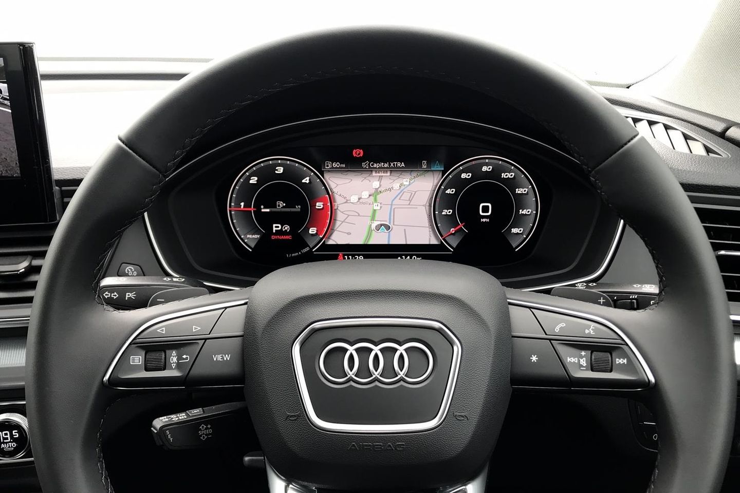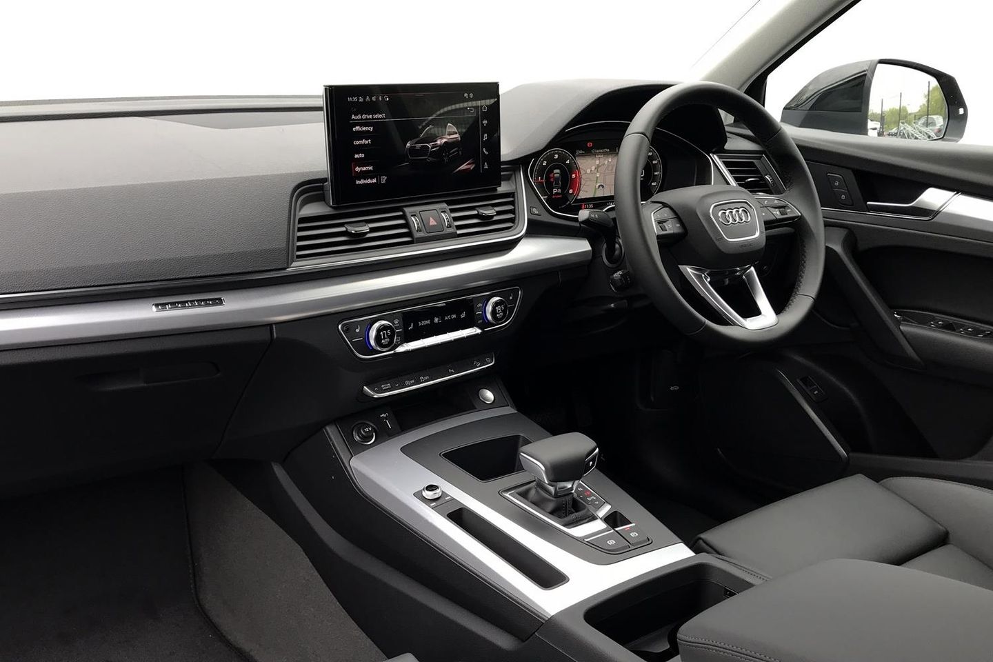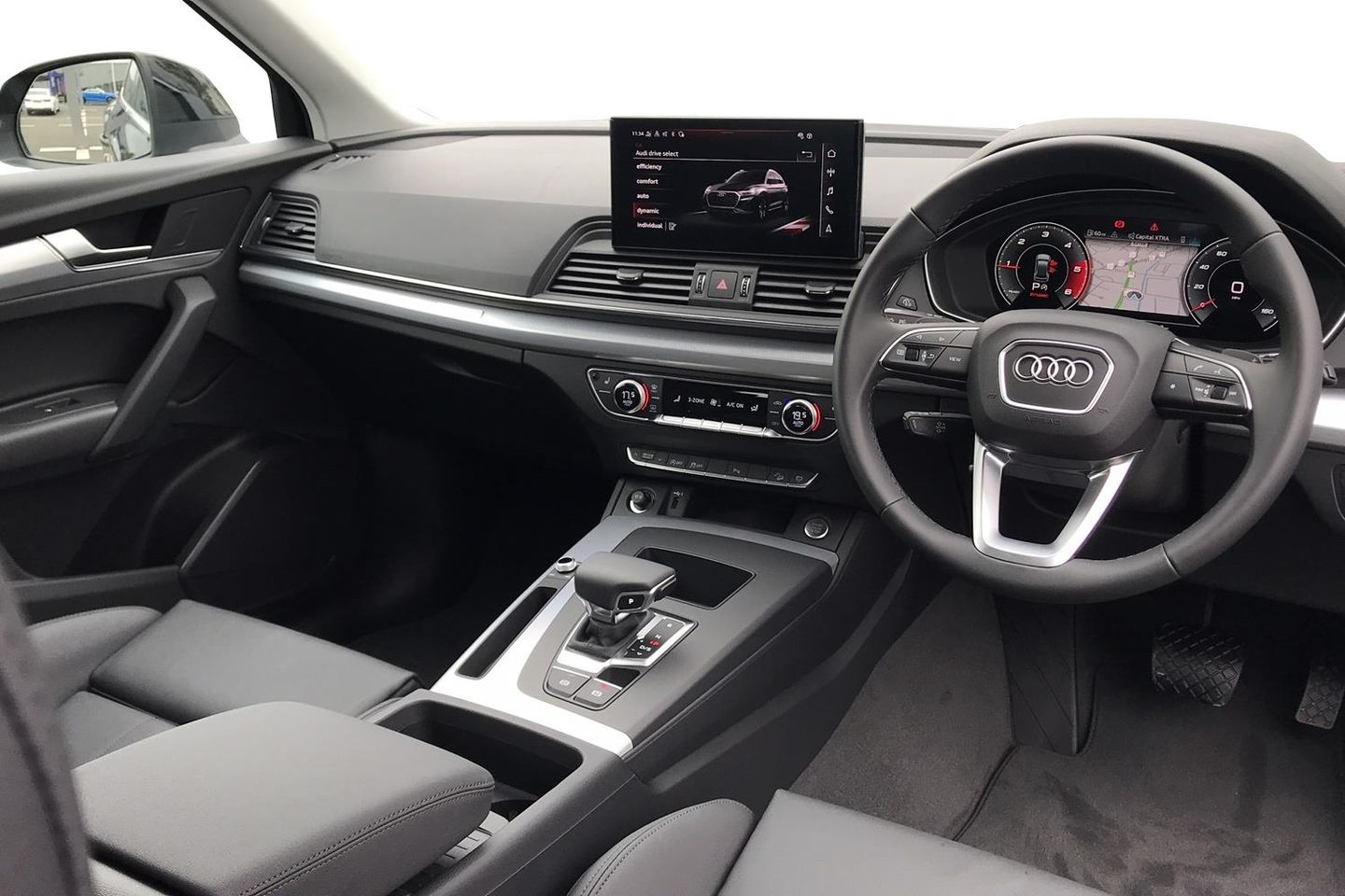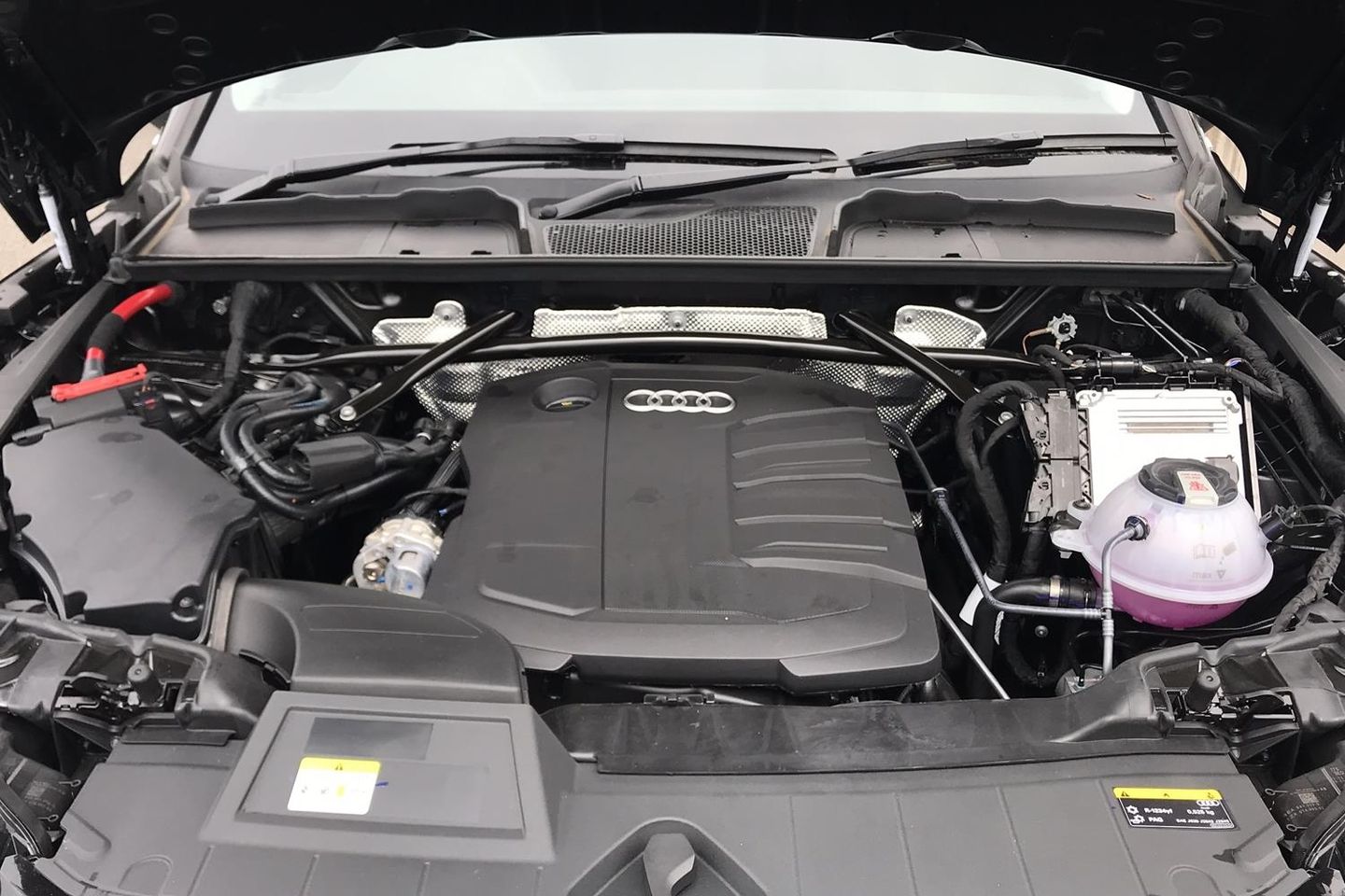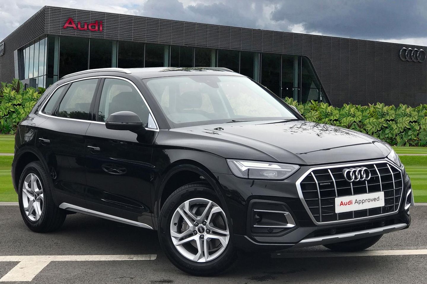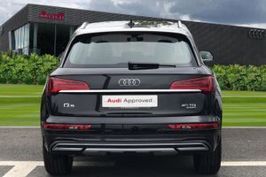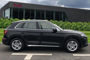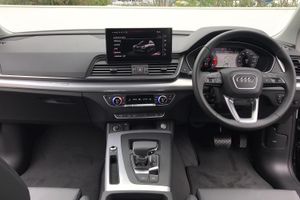 Audi Phone Box with wireless charging,Audi connect safety and service (e-call), Audi connect with Amazon Alexa Integration, Audi drive select, Audi virtual cockpit plus with 12.3" screen and three different layout designs, Audi wireless smartphone interface, Automatic start-stop system with coasting functionality and efficiency programme, Bluetooth interface, Cruise control + speed limiter, Electro - mechanical power assisted steering, MMI navigation plus with 10.1" touch screen, Power tailgate, Reversing camera, Service interval indicator, Voice control system with Audi hotword activation "Hey Audi", Diesel particulate filter, Dynamic suspension, Quattro on demand, DAB Digital radio, Acoustic windscreen, Air inlets in matt titanium black with blades in matt aluminium silver, Aluminium roof rails, Auto dimming rear view mirror, Automatic headlights and windscreen wipers, Body colour bumpers, Body colour door mirrors, Chrome plated exhaust trims, Door sills in Selenite silver, Electric adjustable/heated/folding door mirrors, Front and rear electric windows, LED headlights and LED tail lights, Lower bumpers painted in contrast Manhattan grey, Matt selenite silver underbody protection, Matt twilight grey radiator grille with chrome vertical struts, Rear chrome trim strip below lights, Rear diffuser strip in selenite silver, Rear spoiler, Rear wiper, Roof bars, 2 x USB charging port with aux input socket, 3 rear headrests, 3 spoke multifunction leather steering wheel with shift paddles, 40:20:40 split folding rear seat with rear centre armrest, Comfort front centre armrest, Deluxe 3 zone electronic climate control, Door sills trims with aluminium inlays, Front/rear floor mats, Heated front seats, Height adjustable front head restraints, Height/reach adjustable steering column, ISOFIX child seat mounting and top tether, Luggage compartment cover, Manual seat adjustment with 4-way electric lumbar support, Removable luggage compartment floor, Silver cloth headlining, Sunvisors with vanity mirrors, Twin leather upholstery + front sports seats, High gloss pack - Q5, LED interior light pack - Q5, 3 point seatbelts on all seats, 6 airbags - Driver, front passenger, curtain and side airbags, Electrically operated child locks on rear doors, Electromechanical parking brake, Electronic stabilisation control including ABS, ASR and EDL, Front passenger airbag deactivation, Hill descent control, Hill hold assist, Multi collision brake assist, Pop-up bonnet for pedestrian protection, Pre sense city, Seat belt force limiter, Seatbelt monitoring, Tyre pressure warning, Warning triangle and first aid kit, Anti theft alarm, Anti-theft wheel bolts, Keyless Go access/ignition system, Aluminium rhombus inlay