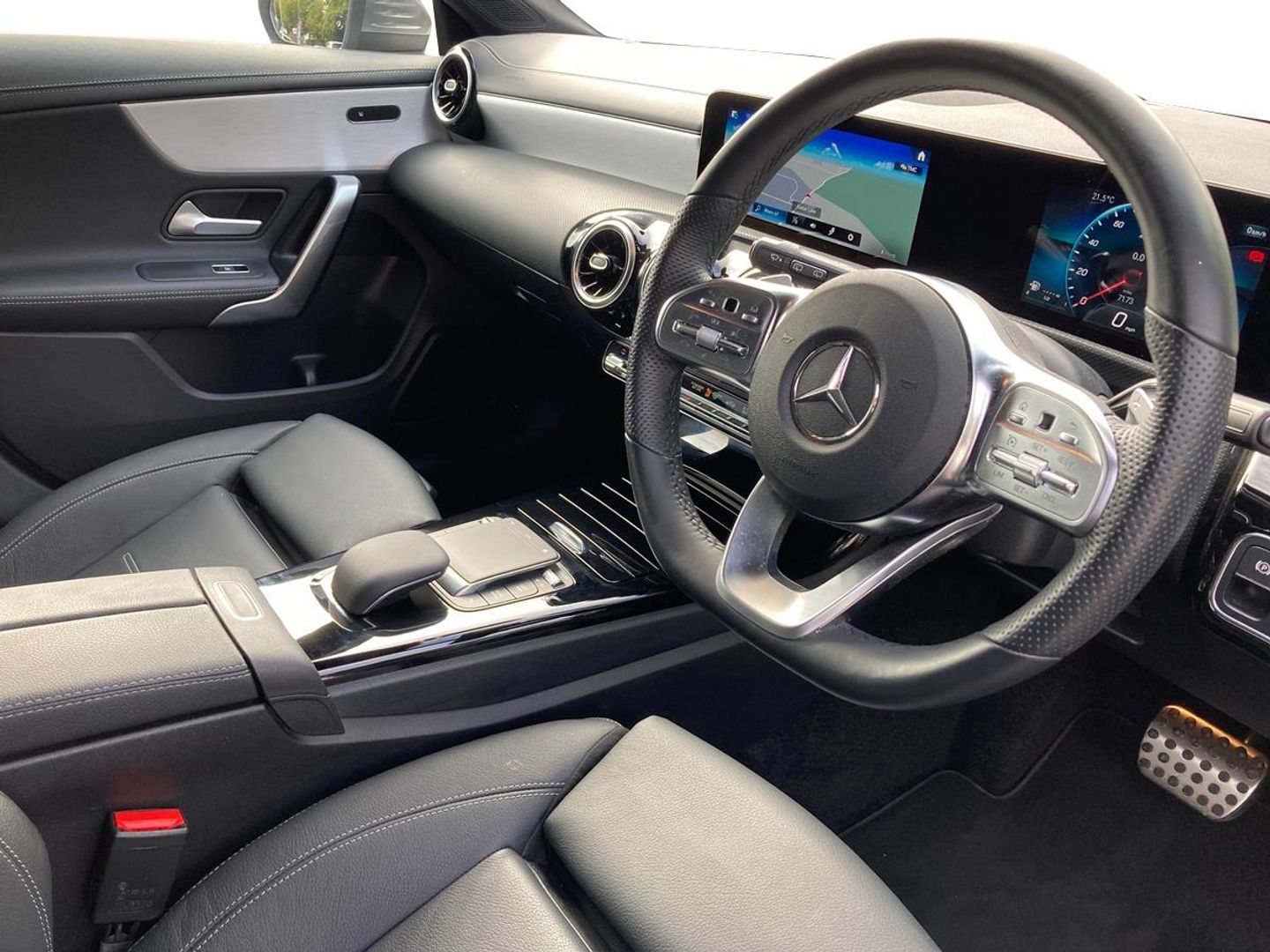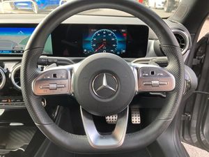 10.25 inch touchscreen media display, 7 inch Instrument display with digital cockpit, Active lane keeping assist, Attention assist - Monitors steering behaviour and long journey fatigue, Cruise control with limiter, Direct steer system with speed sensitive power steering, Dual bluetooth interfaces, DYNAMIC SELECT with a choice of driving modes (ECO, Comfort, Sport, Sport+ and Individual), Easy-pack tailgate, ECO start/stop function, Fluid level warning indicator for fuel, oil, coolant and washer fluid, Hard-disk navigation, Hey Mercedes Voice activation, Lamp failure indicator, MBUX multimedia system with DAB digital radio and touchpad including satellite navigation, Mercedes me connect including emergency call system, accident recovery, breakdown management and maintenance, Outside temperature gauge, Owners manual and service booklet in English, Pre-installation for Vehicle Monitoring, Pre-installation for Vehicle Setup, Pre-installation of private car share, Preinstallation for Mercedes Benz link, Radio aerial integrated into front and rear windshields, Service indicator (ASSYST), Smartphone integration with Apple CarPlay and Android auto, Speed limit assist, Trip computer in multifunction display with current consumption indicator, Wireless charging, 7G-DCT 7 speed automatic transmission, Lowered comfort suspension, Rear axle multi-link, Sporty engine sound system, DAB digital radio tuner, Mercedes Benz sound system (100 W) with 6 speakers, USB (type C) ports (2) in stowage compartment and 1 in front of centre console, Adaptive brake lights, AMG body styling with AMG front apron and rear apron and visible exhaust tailpipe in chrome trim elements, AMG bodystyling side skirts, Body colour bumpers, Body colour door handles, Chrome beltline strips, Diamond radiator grille pins in chrome with silver painted louvres and chrome insert, Electric windows, Electrically adjustable and heated door mirrors with integrated LED indicators, Exhaust system with 2 Visible tailpipe trim elements and rear apron with trim in chrome, Headlamp assist automatic headlamp activation, Heated glass rear windscreen + timer control, High level LED third brake light, LED high performance headlamps with integrated LED daytime running lights, LED tail lamp, Privacy glass with dark tinting on rear side windows and rear window, Rain sensing windscreen wipers with two sensitivity settings, Rear fog lamp, Vehicle Monitoring, Vehicle Setup, Window line trim strip in chrome, 3 spoke flattened bottom nappa leather multifunction steering wheel with perforated leather in grip area, 40:20:40 split folding rear seats with backrest, Air conditioning - Two zone thermotronic luxury automatic climate control with display, Air vents with surround in silver chrome, Automatic child seat recognition sensor, Black roof lining, Brushed stainless steel sports pedals with rubber studs, Floor mats with stitched AMG lettering, Front centre armrest with stowage, Front door sills with Mercedes benz lettering, Front seat cushion length adjustment, Galvanished gear shift paddles on steering wheel, Heated front seats, Illuminated glove compartment stowage, Luggage net on driver/front passenger seat backrest, Manually adjustable front seats, Manually height and reach adjustable steering column, Rear head restraints, Rear interior lamp, Spectacles compartment for driver, Sport seats with fixed head restraints, Stowage compartment in centre console with retractable cover, Sunvisors with illuminated vanity mirrors, Touchpad on center console, Twin front cupholders, Two outer rear seat isofix and top tether child seat fixing points, Light and sight pack - CLA, Mirror pack - CLA, Parking package - CLA, Seat comfort pack - CLA, Active bonnet pedestrain safety measure which detects an impact and raises bonnet by 65mm, Active brake assist includes forward collision warning system with autonomous braking, Adaptive brake assist with hold function and hill start assist, Anti-lock braking system (ABS), Black seat belts, Bonnet with power domes, Brake pad wear warning indicator, Childproof locks manually operated for rear doors and electrically operated for rear power windows, Crash responsive emergency lighting, Driver and front passenger head and sidebags, Driver and front passenger windowbags, Drivers knee airbag, Dual stage driver and front passenger airbags, Electric parking brake, Electronic stability programme with acceleration skid control, ESP curve dynamic assist, Front and rear seatbelt reminder, Front brake callipers with Mercedes Benz lettering, Front passenger seat occupancy sensor, Three point rear seat belts, Tyre pressure monitoring system, Warning triangle and first aid kit, Alarm system with immobiliser and interior protection -Thatcham category 1, Keyless Go starting function, Remote central locking and crash sensor with emergency opening function, Light aluminium with longitudinal grain interior trim, 18" 5 twin spoke design alloy wheels painted in titanium grey with high sheen finish, Summer tyres, Tirefit tyre sealant kit