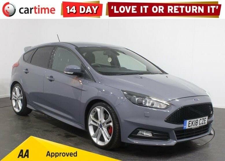 When walking round the exterior of this stunning Ford Focus ST 3 finished in Stealth Grey and styled with 19 inch alloys, Privacy glass, Xenon headlights, and fitted with rear parking sensors. When you open the drivers door you are presented with unmarked Black Leather interior with front Recaro bucket seats and a cockpit packed with technology including Satellite Navigation, Heated front seats, Bluetooth, multi media interface, heated Power folding wing mirrors, multi-function flat bottom steering wheel, heated windscreen, cruise control, speed limiter, voice command, 6 Speed Manual gearbox, Stop Start function, Dual zone climate control, Auto lights , Apple Carplay, DAB digital radio, music streaming via Cd, Usb and Bluetooth. This year's UK Car Supermarket of the Year for the second year running, we offer a 14 day 'Love It or Return It' promise on every car - see our website for more details. BUY ON OUR BEST FINANCE RATES - 0% finance, part exchange and up to six years' warranty also available on all cars. All cars are PDI and HPI gold checked and come with a new MOT and service where required. Monday, Tuesday, Friday: 8am-7pm; Wednesday, Thursday: 9am-9pm; Saturday: 9am-6pm; Sunday 9.30am-5pm. Every effort has been made to ensure the Vehicle details are correct, however errors may occur so please check details with our Sales Team before visiting.