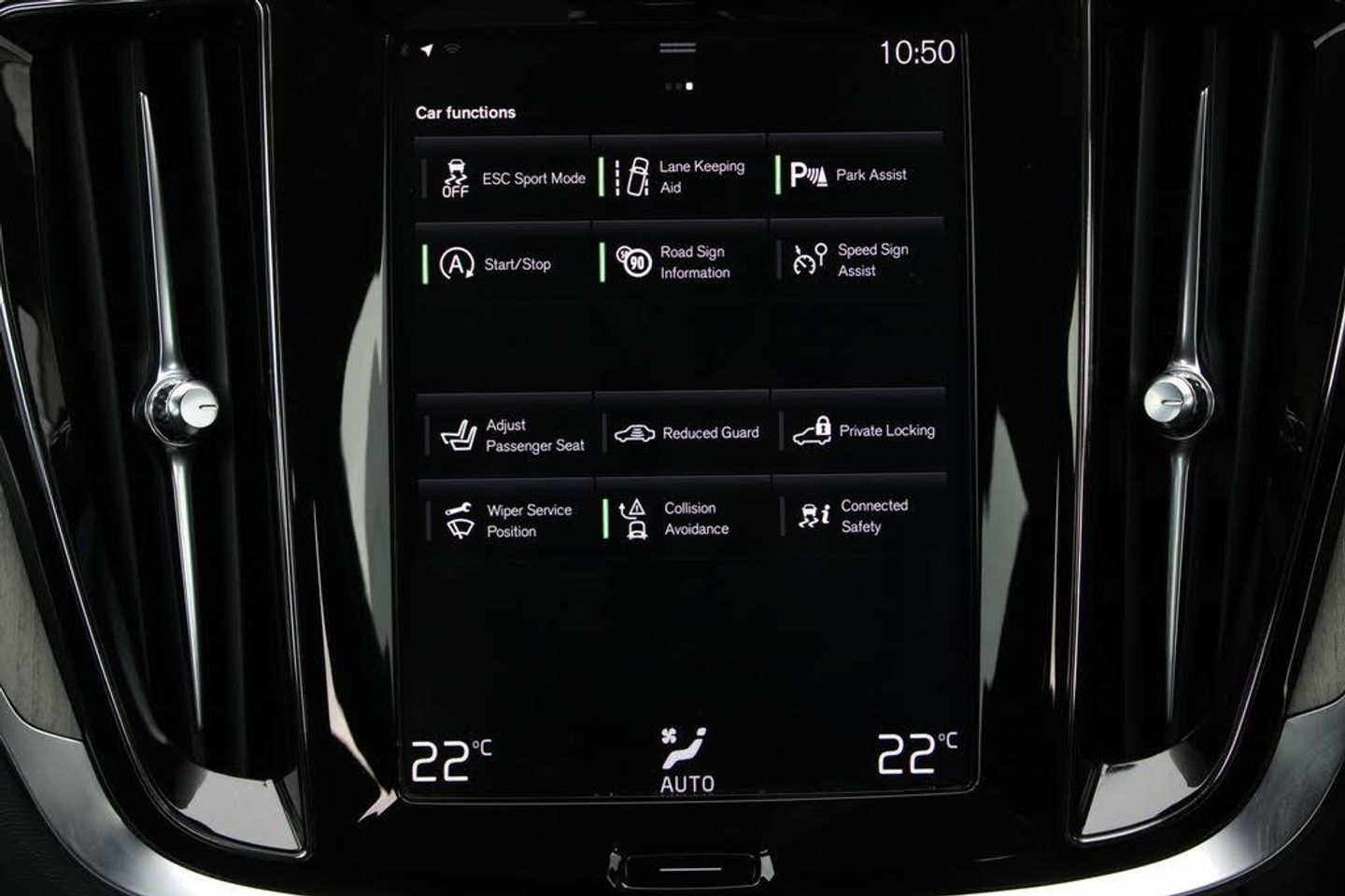 Information centre,Trip computer,Service interval indicator,Speed sensitive steering,Bluetooth hands free telephone kit,Volvo on call,Speed limiter,Adjustable steering wheel force,12.3" Active TFT crystal driver's instrument display,Oncoming Lane Mitigation,Drive mode settings,Driver alert control with lane keeping aid,8 speed automatic transmission with start/stop + manual change functions,DAB Digital radio,Rear wiper,Body colour bumpers,Roof antenna,Home safe and approach lighting,Roof spoiler,Power front and rear windows,Chrome window surround,LED front fog lights,Chrome front lower bumper,High gloss black grille with chrome inserts,Visible VIN plate,Rain sensor with automatic windscreen wiper activation,Colour coordinated auto folding and heated power door mirrors,Front aluminium tread plates,Front and rear side steps illumination,Integrated roof rails in silver,Dual integrated exhaust pipes,Adaptive brake lights with high level LED brake lights,Automatic headlight levelling system,Automatic LED Headlights + Active high beam incorporating daytime running lights,Leather upholstery,WHIPS - Whiplash Protection System,Height/reach adjustable steering column,Front footwell illumination,Front head restraints,B Pillar ventilation,Leather gear knob,Extended front seat cushions,Rear armrest with storage + cupholders,Isofix attachments on rear seats,Lockable load floor,12V socket in front + rear tunnel console,Rear footwell illumination,A-pillar parking ticket holder,Ambient lighting in door trim,Multicolour theatre lights,3 spoke leather steering wheel with chrome trim,Perforated and ventilated nappa soft leather upholstery,High gloss black steering wheel remote infotainment controls,Bright metal luggage compartment threshold,Centre console cupholders and storage,Glovebox compartment with illumination,Front/rear door pockets and front cupholder illumination,Cargo load hooks,Underfloor cargo storage,Front reading lights + Theatre lighting and centre armrest storage illumination,Power driver seat with memory + exterior mirrors memory,Multi directional lumbar support,Power passenger seat,Illuminated vanity mirrors + ticket holder,Luggage compartment illumination,Tailgate illumination,SIPS airbags,SIPS (Side Impact Protection System),Dual stage Driver/Passenger Airbags,Tyre pressure monitoring system,Hill start assist,5 x 3 point seatbelts,Road sign information display,Run off Road Protection,Run off Road Mitigation,IC (Inflatable Curtains) - Full Length,Passenger airbag cut-off switch,Vehicle deceleration control with Anti-lock Brake System, Electronic Brake Distribution and Emergency Brake Assist,Stability and Traction Control with Spin control, Engine Drag Control and Corner Traction Control,Power parking brake with auto hold function,City safety with steering support with Pedestrian + cyclist + large animal detection + front collision warning with full auto brake,Seatbelt reminder and pretensioners for all seats,Anti-theft alarm including immobiliser/volume sensor + level sensor,Private locking for tailgate