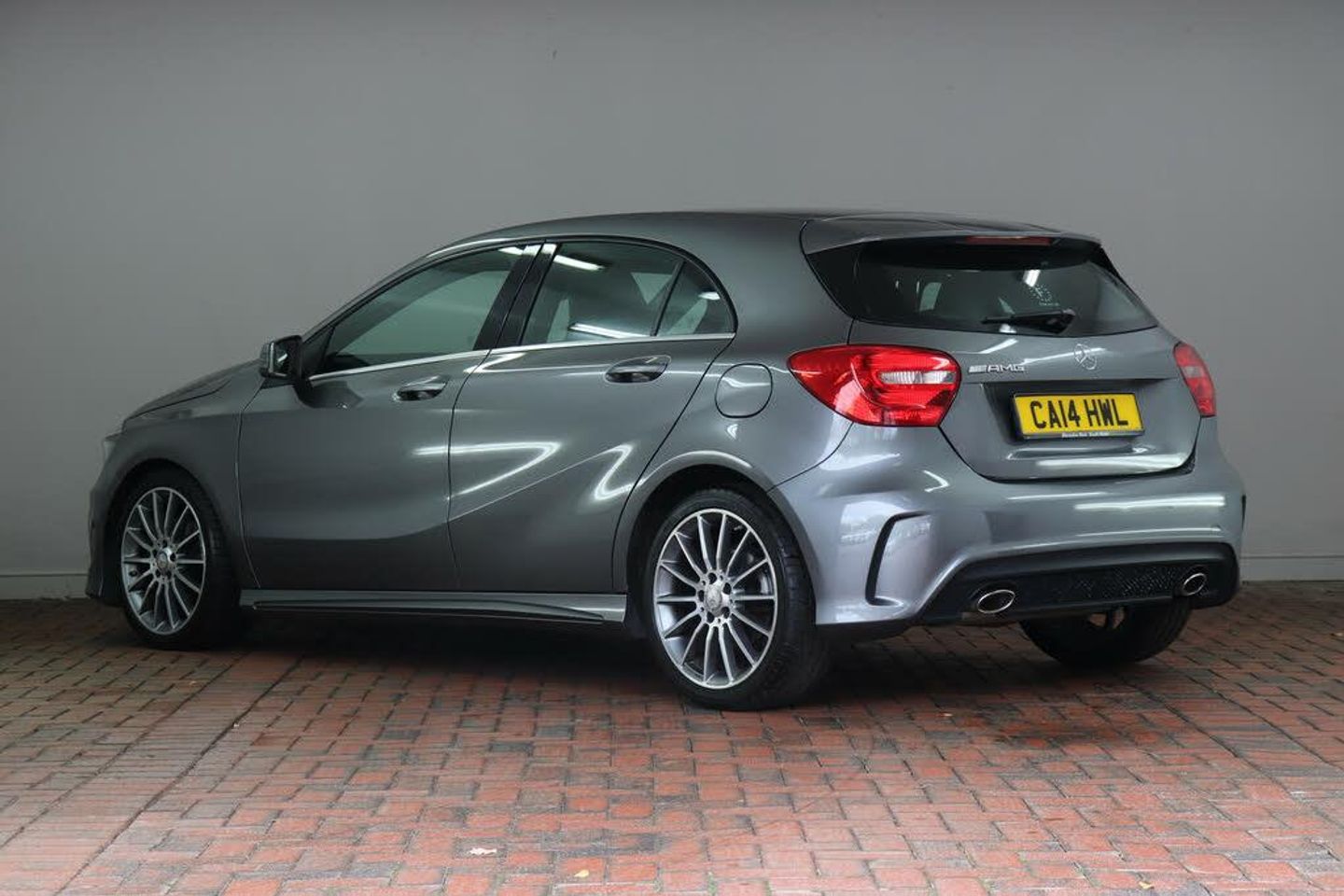 Trip computer,Low fluid warning light,External temperature gauge,Service indicator (ASSYST PLUS),Speed sensitive variable PAS,Bulb failure indicator,Bluetooth interface for hands free telephone,Attention assist,Collision prevention assist,USB port,Electric front windows,Electric rear windows,Rear wiper,Body colour door handles,Body colour bumpers,AMG body styling,Body colour side skirt,Heated rear window with timer,Headlamp assist,Adaptive brake lights,Electric adjustable heated door mirrors,Twin chrome exhaust tailpipes,Rear head restraints,Illuminated glovebox,Storage compartment under load area floor,Luggage compartment lighting,Front centre armrest with storage compartment,Centre console with cupholders,Height/reach adjustable steering column,1/3 to 2/3 split folding rear seats,Auto Mercedes-Benz child seat recognition sensor,Leather gearshift,Front head restraints,Black headlining,Red stitching on steering wheel,Sports pedals,Isofix rear child seat preparation,Front sport seats,Gearshift paddles on steering wheel,Seat cushion angle adjustment,Load securing rings in luggage compartment,Footwell lights,12V power socket in centre console,Ambient lighting,3 Spoke sports multifunction flat bottomed leather steering wheel,Light and sight pack - A Class,Front side airbags,ABS with Brake Assist,Front passenger seat occupancy sensor,Child proof door locks,Dual stage Driver/Passenger Airbags,Tyre pressure monitoring system,ESP with ASR,3 rear 3 point seatbelts,Electronic parking brake,Drivers knee airbag,Hill start assist,Window airbags,Adaptive brake system,Front and rear seatbelt reminder,Crash responsive emergency lighting,Remote central locking,Alarm system/interior protection/immobiliser,Carbon effect trim,Chrome air vent surrounds