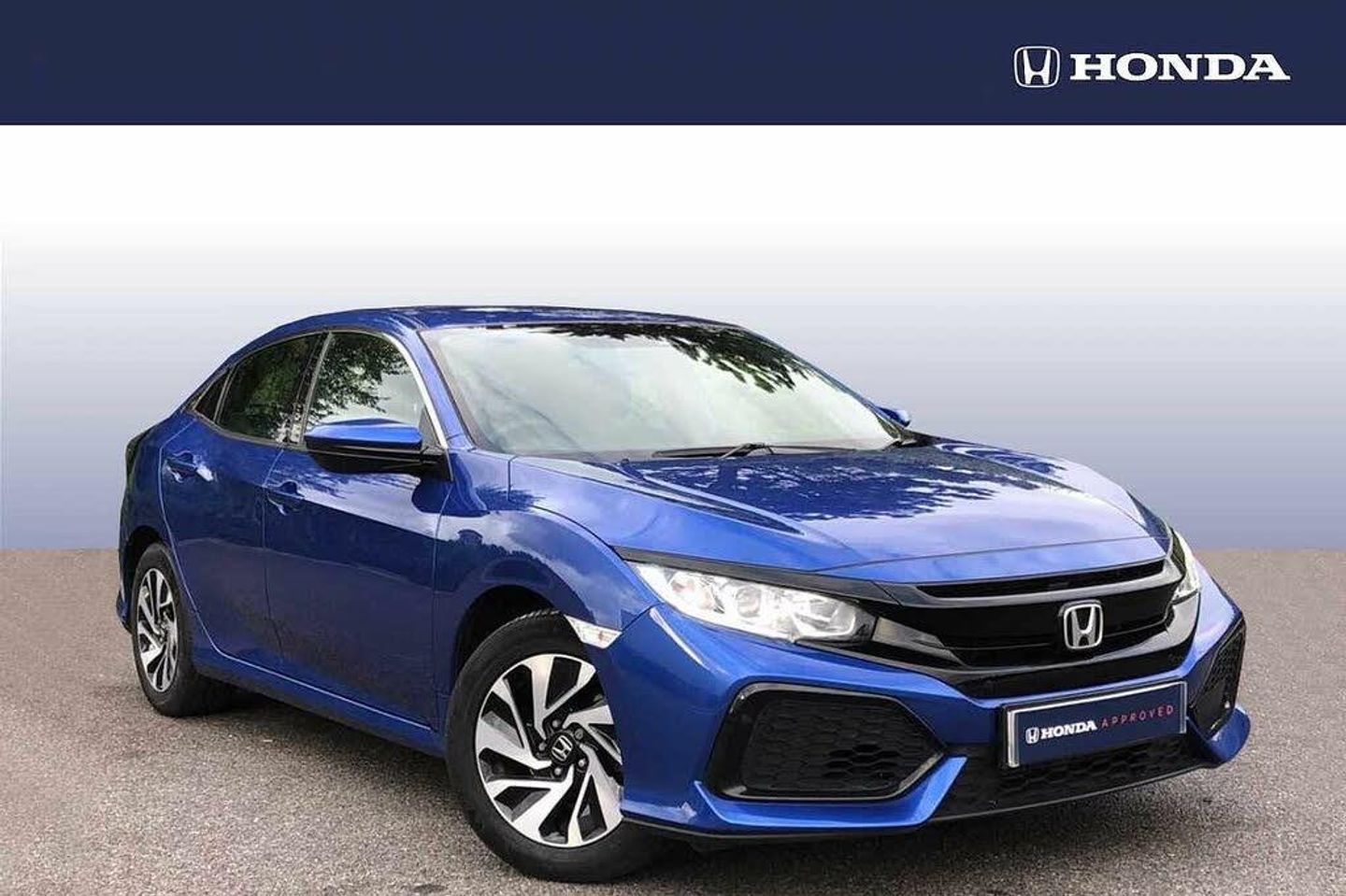 Exterior Features, Electric front/rear windows/one touch operation, Rear wiper, Remote window closing, Vehicle stability assist, Black grille, Body colour door handles, Chrome window surround, Automatic coming/leaving home lighting function, Automatic headlights with dusk sensor, High beam assist, LED daytime running lights, Safety, ABS+EBD+Brake assist, Collision mitigation braking system, Electronic parking brake with auto hold, Hill start assist, Adaptive cruise control, Electric power steering, Emergency stop signalling system, Forward collision warning, Front and rear parking sensors, Lane departure warning system, Lane keep assist, Speed limiter, Traffic sign recognition, Automatic retractable door mirrors, Electric adjustable heated door mirrors, Power foldback door mirrors, 5 three point seatbelts, Anti-whiplash front headrests, Deflation detection system, Dual front SRS airbags, Front and rear curtain airbags, Front seatbelt pretensioners, Front side airbags, Passenger airbag deactivate switch, Tyre pressure warning, Audio / Communications, Bluetooth hands free telephone connection, 'Shark fin' mobile antenna, 8 speakers, Digital Audio Broadcast (DAB) Tuner, Steering wheel mounted audio controls, USB port, Driver Convenience, Easy fuel capless refuelling system, Miscellaneous, Blue dashboard illumination, Colour driver's information system display, Interior Features, Climate control air conditioning, Cargo hooks, Centre console storage and sliding armrest, Cloth upholstery, Front accessory power socket, Tilt/telescopic adjust steering wheel, Tonneau cover, Boot light, Front map lights, Front/rear courtesy lights, Sunvisors with illuminated vanity mirrors, Trim, Driver's seat height adjustment, Isofix system on outer rear seats, Passenger seat back pocket, Three height adjustable rear head restraints, Security, ECU immobiliser, Honda super locks, Remote central locking with 2 remote folding keys, Security alarm, Wheels, 16" alloy wheels, Tyre repair kit, Exterior Features, Metallic paint, Paint - Metallic, Metallic - Brilliant sporty blue, Trim - Cloth, Cloth - Black