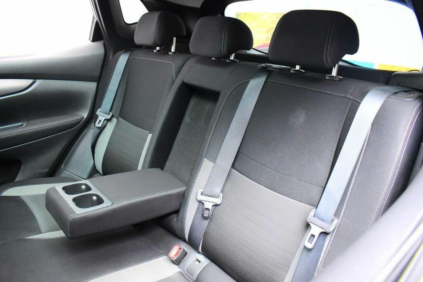'Shark fin' mobile antenna, 18'' Bi-colour alloy wheels, 2 X front 12v power sockets, 5'' TFT driver information centre, 6 speakers, 60/40 split folding rear seat, ABS, brake assist and EBD, Alarm, Ambient interior lighting, Around View Monitor, Automatic headlamp activation, Bluetooth phone integration system, Body coloured bumpers, Body coloured door handles, Body coloured door mirrors, Centre console with armrest, Child locks on rear doors, Chrome interior door handles, Chrome window surround, Cloth upholstery, Configurable luggage board system, Cruise control, Curtain airbags, DAB Digital radio, Diesel particulate filter, Driver + front passenger lumbar support, Driver/front passenger airbag, Dual zone climate control, Electric folding and heated door mirrors, Electric speed sensitive power steering, Electronic parking brake, ESP + traction control, Forward emergency braking, Front and rear door pockets with bottle holders, Front and rear parking sensors, Front headrests, Front passenger airbag deactivation, Front seat belt pre-tensioners with load limiters, Graphite interior trim, Height adjustable driver's seat, Height adjustable front seatbelts, Height adjustable passenger seat, High beam assist, Hill start assist, Illuminated electric window switch, Immobiliser, Intelligent Key, Interior mirror with auto anti dazzle, Isofix child seat preparation, Lane departure warning system, Leather gearknob, Leather interior door handles, Leather knee rest, Leather steering wheel, LED indicators in door mirrors, Luggage compartment lighting, Matt silver roof rails, Metallic paint, Nissan connect sat nav system, One touch electric front/rear windows, Outside temperature display, Parcel shelf, Pollen filter, Privacy glass, Push button starter, Radio/CD, Rain sensor windscreen wipers, Rake/reach adjustable steering wheel, Rear headrests, Rear roof spoiler, Rear view camera, Rear wiper, Remote central locking, Seatbelt warning, Service interval indicator, Side airbags, Smartphone apps, Speed limiter, Steering wheel mounted audio controls, Three 3 point rear seatbelts, Traffic sign recognition, Trip computer, Tyre pressure monitoring system, Tyre puncture repair kit, USB/aux input socket REF:69VWD, Vehicle ref: J707M, Glass Roof Pack, LED Pack