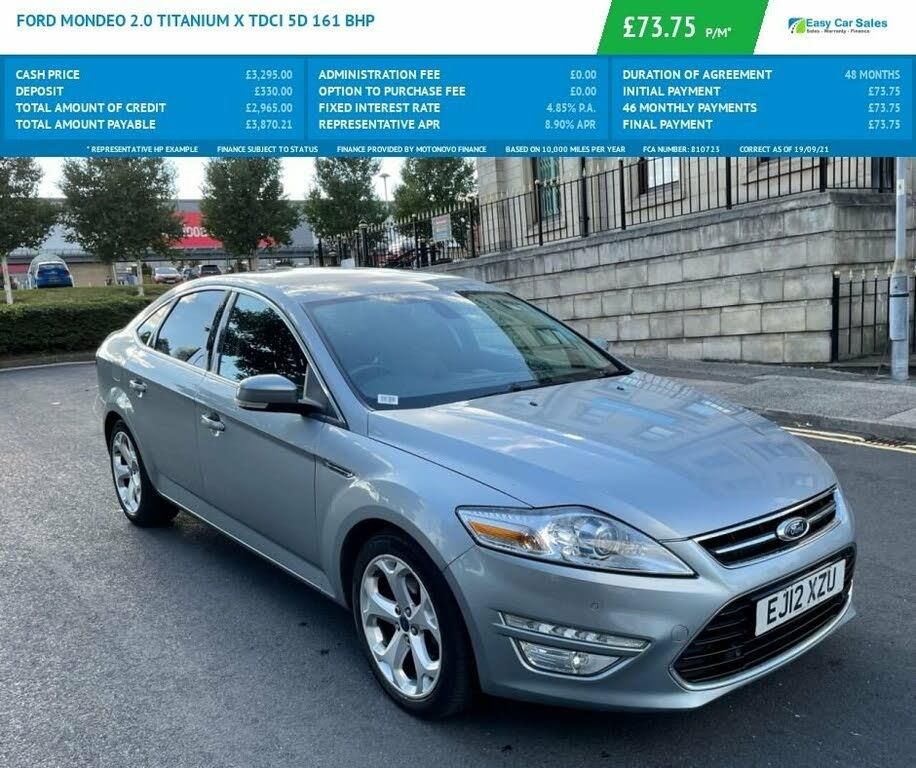 FORD MONDEO 2.0 TITANIUM X TDCI 5d 161 BHP comes with FSH 11 stamps in service book , 2 KEYS TOP spec Touchscreen navigation system with DAB radio/CD, USB, 8 speakers, voice control and 4GB SD card FULL BLACK HEATED LEATHER TRIM, HEATED & COOLED FRONT SEATS, KEYLESS START, CD/MP3, BLUETOOTH CONNECTIVITY - TELEPHONE & AUDIO, FRONT & REAR PARKING SENSORS, MULTI-FUNCTIONAL STEERING WHEEL, DAYTIME RUNNING LIGHTS (DRL'S), AUTO LIGHTS, ELECTRIC FOLDING MIRRORS, CRUISE CONTROL, AIR CONDITIONING, FULL ELECTRIC WINDOWS, FACTORY FITTED REAR TINTED WINDOWS, ALLOY WHEELS,. EVERY CAR IS HPI CHECKED (certificate available on request) LOW RATE FINANCE AVAILABLE (we can also help if you have bad credit) PART EXCHANGE WELCOME FULL DEALER FACILITIES NO PRESSURE FRIENDLY STAF. Easy car sales are Family car dealership based in Bradford. Our philosophy is simple ?To offer the very best vehicles at the most competitive internet prices.? All our cars are steam cleaned and valeted prior to leaving. All our cars undergo a strict ?pre sale? inspection which includes, full HPI report, mileage check, mechanical inspection. Here at easy car sales we treat all vehicles like they are our own, we go that extra mile to ensure our vehicles are the very best on the market. We?re so confident with the quality of our cars we offer warranties ranging from 3 months with an option to upgrade to an AA warranty.