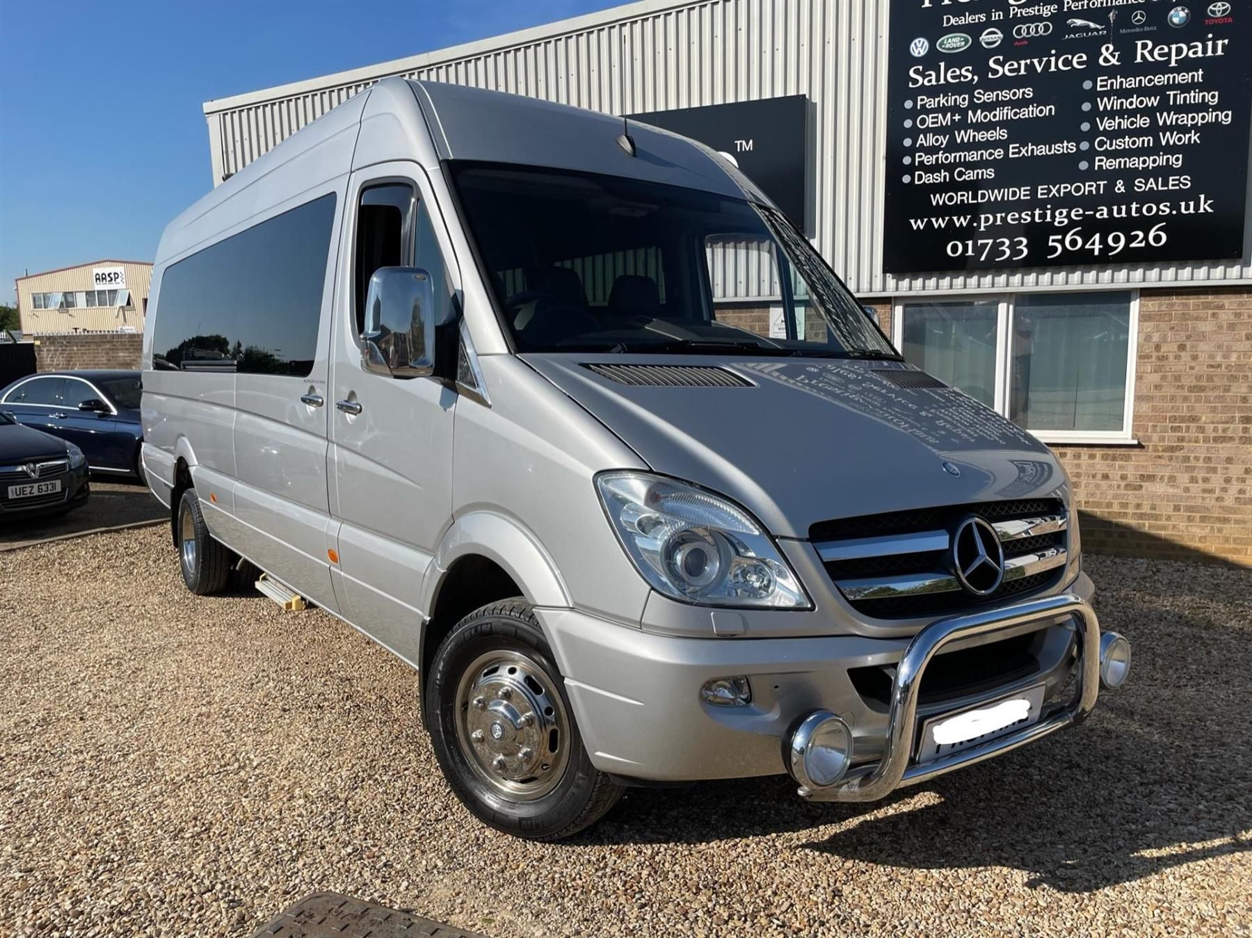 STUNNING EXAMPLE SUPER RARE 5 TONNE 516 CDI MERCEDES SPRINTER. MEGA SPEC VEHICLE. INDIVIDUALLY ORDERED, 1 PRIVATE OPERATOR OWNER FROM NEW. PSV MOT VALID TILL 06/03/23, FULLY SERVICED WITH GENUINE MB PARTS+OIL, READY FOR WORK. EXTRA LONG WHEEL BASE HI ROOF MODEL. UNIQUE FACTORY ORDERED INDIVIDUAL SPEC BUS. FACTORY GLAZING WITH BERNARD MANSELL INTERIOR / SEAT CONVERSION. 5000KG GROSS VEHICLE WEIGHT. TWIN REAR WHEELS. 2.1 CDI 163 BHP TWIN TURBO DIESEL WITH 6 SPEED GEARBOX. 16 PASSENGER SEATS WITH REAR BOOT / LUGGAGE AREA. STANDARD BUS TAX BAND 12 MONTHS PRICED �165. EUROLINER CHROME WHEEL COVERS ALL ROUND. METALLIC BRILLIANT SILVER PAINTWORK WITH FACTORY COLOUR CODED BUMPERS. TWIN ELECTRIC SLIDING DOORS. TWIN REAR WRAP AROUND DOORS WITH FACTORY GLAZING. FACTORY DARK TINTED HEAT ABSORBING GLASS ALL ROUND. DIGITAL TACHO. FACTORY FITTED BI XENON HEADLIGHTS WITH CORNERING ILLUMINATION. HEADLIGHT POWERWASH. FACTORY FITTED CLIMATE CONTROL AIR CON FRONT AND REAR. FACTORY FITTED MUDFLAPS. FACTORY FITTED TOWBAR WITH 13 PIN ELECS AND FACTORY FITTED REAR STEP. ELEC RETRACTING SIDE STEPS BOTH SIDES. CHROME A BAR TO FRONT WITH SPOT LIGHTS. FACTORY FITTED FRONT FOG LIGHTS. HEATED ELEC ADJUSTABLE MIRRORS. BLUETOOTH TELEPHONE INTEGRATION. AUDIO 20 CD RADIO MP3 PLAYER WITH AUX IN USB MUSIC CONNECT. REMOTE CENTRAL LOCKING. CHROME DOOR HANDLES ALL ROUND. CHROME MIRRORS. WOOD TRIM KIT TO CAB. DRIVES BEAUTIFULLY. STUNNING LUXURY MINI COACH MINIBUS. DEFINITELY WONT BE FINDING ANOTHER ONE LIKE THIS. FOR ALL ENQUIRIES PLEASE CALL JIMMY ON +44(0)7989 123497 / +44(0)1733 564926. CHOICE OF QUALITY USED COMMERCIALS ALWAYS IN STOCK. WORLDWIDE EXPORT ENQUIRIES WELCOME. SHIPPING ARRANGED. FINANCE ARRANGED AT MARKET LEADING RATES. NATIONWIDE DELIVERY SERVICE AVAILABLE. ALL DEALER FACILITIES. FULL PERSONALISED VIDEOS AVAILABLE. CONTACTLESS VIEWING & PURCHASING AVAILABLE. FOR ALL ENQUIRIES PLEASE CALL JIMMY ON 07989 123497 / 01733 564926. FOR MORE PICTURES PLEASE VISIT DEALER WEBSITE. SPECIALIST SUPPLIER OF PRESTIGE, PERFORMANCE & 4X4's. HONEST FRIENDLY & PROFESSIONALLY RUN FAMILY BUSINESS. 3 GENERATIONS OF EXPERIENCE. GENUINE 5 STAR SERVICE & REVIEWS TO REFLECT. BUY WITH CONFIDENCE. GOOD OLD FASHIONED NO NONSENSE CUSTOMER FIRST APPROACH. FOR FULL STOCKLIST PLEASE VISIT DEALER WEBSITE.