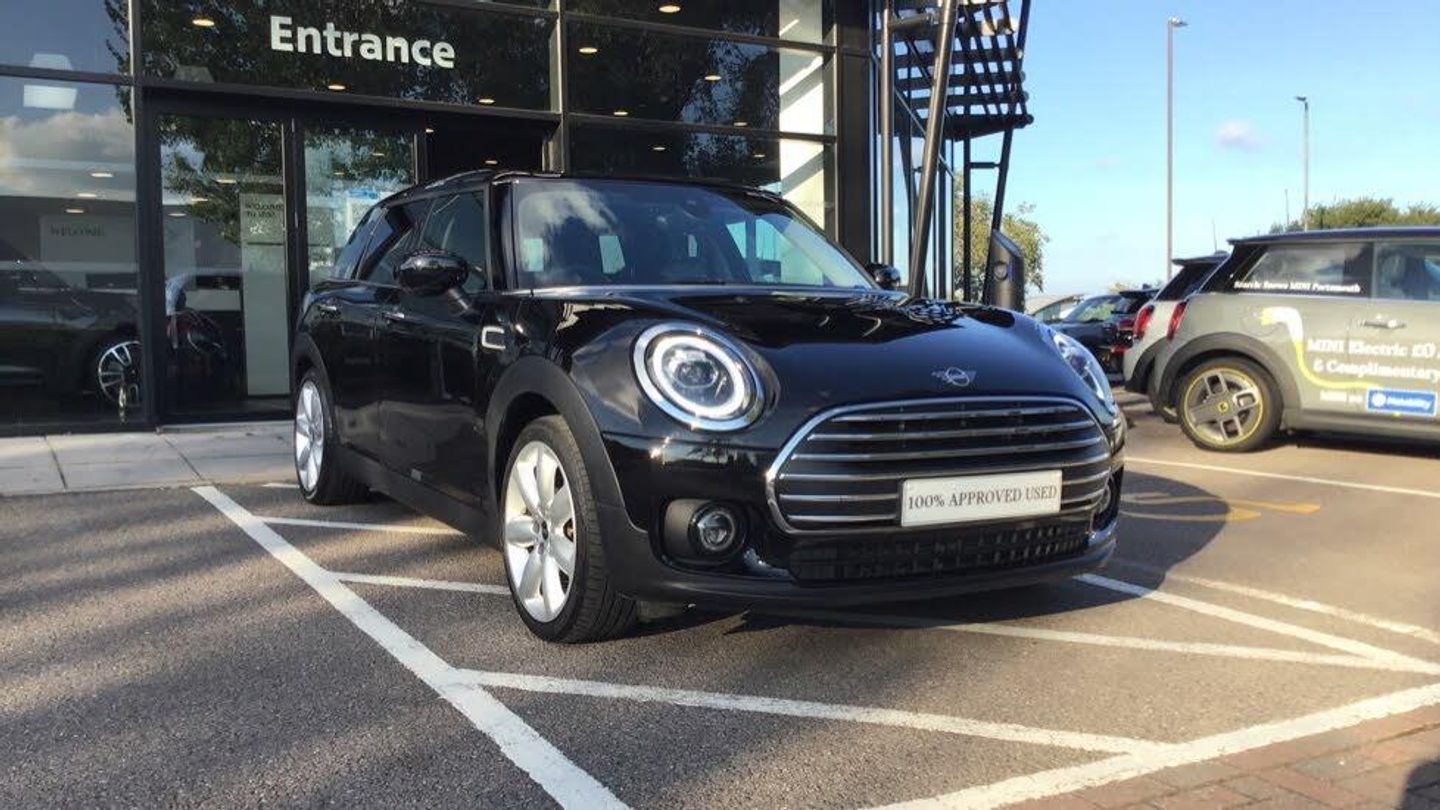 Automatic - Apple Car Play-This Cooper Clubman is finished in Midnight Black Metallic with a matching Black Leather interior and darkened glass gives this Clubman a great look with the contrasting chrome accents.The Exclusive model comes with a great standard specification including the Lounge Leather upholsterySpecified with the comfort pack and navigation pack including Apple Car Play which mirrors the APPs from you compatible Apple device and enables APPs such as spotify and Waze to be used in the Navigation Screen Screen in the MINI.At Snows MINI Portsmouth we value your peace of mind. That's why all our 100% Approved Cars are given a 360 check by our MINI trained Technicians and only when it has passed with flying colours does it earn our tried and trusted guarantee. All of our 100% Approved MINIs come with:12 Months MINI Warranty12 Months MOT and MOT cover Full Service HistoryIndependent Vehicle History and Mileage Checks We offer a full range of Finance options through MINI Financial Services and are happy to tailor a quotation to suit your needs.Our team are available 7 days a week and are happy to offer a video consultation if you are unable to visit the showroom in person. RDE exhaust emissions standard, 18'' Star Spoke, Tyre Repair Kit, MINI Yours Leather Steering Wheel, Multifunction Controls on Steering Wheel, Chrome Line interior, Chrome Exterior Trim, MINI Yours Interior Piano Black illum, MINI Excitement Pack, Sport seats, Rear Fog Light, Active Guard, Front LED Foglights, LED Headlights, Cruise Control, Additional Interior Lighting, DAB Radio, Steptronic transmission with double clut, Darkened Rear Glass, Front centre armrest, Storage Pack, Heated front seats, Rear Parking Sensors, Automatic Air Conditioning, MINI Emergency Call, MINI TeleServices, ConnectedDrive Services, Real Time Traffic Information, Remote Services, Apple CarPlay preparation, Visual Boost Radio, MINI Connected, MINI Navigation System, Navigation Package, Comfort Pack. Black 5 seats.