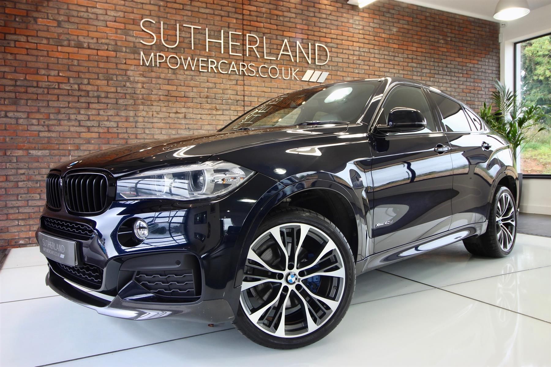 Late 2016 BMW X6 40d M Sport presented in Carbon Black Metallic with Ivory White Dakota Leather Sports Seats. Two former keepers and full service history. Exceptional specification including Heads Up Display, Front & Rear Heated Seats, Reverse Camera, Digital Display, Harman Kardon and Enhanced Bluetooth. The exterior benefits from M Performance Carbon Front Splitter, M Performance Carbon Spoiler, M Performance Carbon Diffuser and 21 Inch Alloy Wheels with Dunlop RunFlat Tyres. Low rates of finance available, subject to status. All of our cars are checked and prepared to the highest possible standards by our in-house technicians prior to sale. All vehicles are detailed and presented to industry leading standards, BUY WITH CONFIDENCE.Service history, book packs and manuals present. HPI and mileage history checked and clear Full service history, Excellent bodywork, White Full leather interior - Excellent Condition, Tyre condition New, Four wheel-drive, 5 seats, Metallic Carbon Black, Upgrades - Head-Up Display, Dakota Leather - Ivory White with Black Interior, Loudspeaker System - Harman Kardon, Enhanced Bluetooth Telephone Preparation with USB Audio Interface and Voice Control, Sun Protection Glazing, Multi-Functional Instrument Panel, Seat Heating - Rear, Interior Trim - American Oak High Gloss, Steering Wheel - Heated, Speed Limit Display, Standard Features - 20GB HDD Memory, 20in Alloy Wheels - Light M Double Spoke Style - 469M, 20in Alloy Wheels - Light M Double Spoke Style - 469M with Run Flat Tyres, ASC - Automatic Stability Control, Access to BMW Connected Plus for 12 Months from Vehicle Production - Subscription Required, Adaptive M Sport Suspension, Adaptive M Suspension, Air Conditioning - Automatic - Dual Zone, Air Conditioning - Automatic with Two-Zone Control, Air Conditioning - Automatic with Two-Zone Control and Extended Features, Airbags, Airbags - Curtain, Airbags - Driver and Front Passenger Side, Airbags - Front Side, Airbags - Passenger, Alarm System - Thatcham 1 with Remote Control and Engine Immobiliser, Alarm System Thatcham 1 with Remote Control, Automatically Dimming Rear View Mirror, BMW Apps Interface, BMW ConnectedDrive Services, BMW Online Services, BMW TeleServices, Bluetooth Hands Free Facility, Bluetooth Hands Free with USB Audio Interface, Brake Fade Compensation, Brake Pre-Tensioning, CBC - Cornering Brake Control, Central Locking - Remote, City Collision Mitigation, Concierge Service, Cruise Control with Brake Function, DAB Digital Radio, DSC - Dynamic Stability Control Plus, DTC - Dynamic Traction Control, Daytime Running Lights, Display - 10.2in Colour Screen, Door Handles - Exterior Puddle Lights, Door Handles with Downlights, Door Mirrors - Folding - Automatically Dimming, Driving Assistant, EBD - Electronic Brake-Force Distribution, Electro-Mechanical Parking Brake with Auto-Hold Function, Exhaust Tailpipes - Single - Left and Right - Chrome - Quadrilateral, Exhaust Tailpipes - Single Quadrilateral Left and Right, Extended Storage, Favourite Buttons, Folding Side Mirrors with Auto-Dimming, Full Black Panel Display, Headlight Wash, Headlights - Automatic Activation, Headlining - Anthracite, Heated Windscreen Washer Jets, Interior Trim - Aluminium Hexagon, Knee Pads on Centre Console for Driver and Front Passenger, LED Fog Lights - Front, Lane Departure Warning System, Lashing Rails and Four Lashing Eyes, Loudspeaker System - BMW Advanced, Luggage Compartment - Storage Nets, M Aerodynamic Bodystyling, M Leather Steering Wheel with Gearshift Paddles, M Sport Steering Wheel, Navigation System - BMW Professional Multimedia, PDC - Park Distance Control - Front, PDC - Park Distance Control - Front and Rear, PDC - Park Distance Control - Rear, Personal Profile, Rain Sensor, Rain Sensor with Automatic Headlight Activation, Remote Control - Integrated Key with M Designation, Remote Control Locking, Remote Services, Reversing Assist Camera, Seat Adjustment - Front Electric with Driver Memory, Seat Heating - Front, Seats - Driver Memory, Seats - Front Heated, Self-levelling Air Suspension - Rear, Servotronic, Servotronic Steering, Smokers Package, Sport Seats - Front, Start-Stop Button, Start-Stop Button with Keyless Operation, Steering Wheel - Sport Leather Multifunction - 3 Spoke, Suspension - Sport, TPMS - Tyre Pressure Monitoring, TPWS - Tyre Pressure Warning System, Tailgate - Automatic - One Piece with Intermediate Stop Function and Sill Finisher in Stainless Steel, Tailgate - Powered - One Piece with Intermediate Stop Function, Tailgate Operation - Powered, USB Audio Interface, VDC - Variable Damper Control, Voice Control, Voice Control - Audio, Voice Control - Navigation, Voice Control - Phone, Windows - Heat Insulated Tinted All Round, Windows - Heat Insulated-Green Tinted All Round, Windscreen Washer Jets - Heated, Xenon Headlights, Xenon Headlights with Headlight Wash, Full dealership facilities available, all major debit/credit cards accepted, FCA approved dealership, £31,490 p/x considered