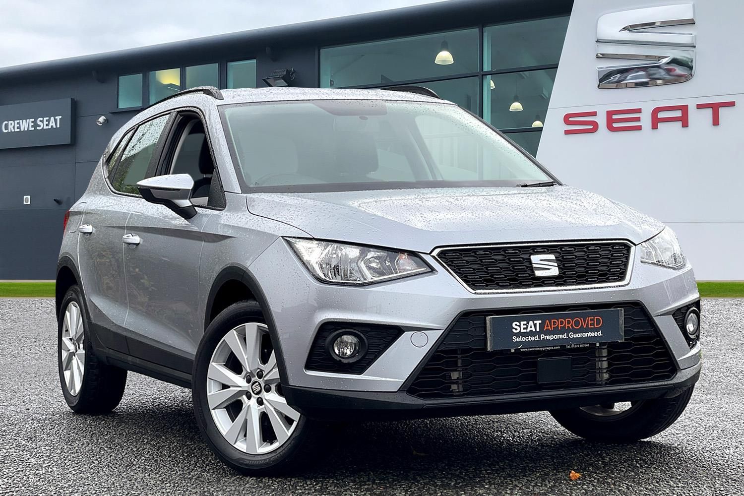 Exterior Features, Metallic paint, Paint - Metallic, Metallic - Urban silver, Exterior Features, Electric front/rear windows with one touch/auto up/down, Rear window wash/wipe, Comfort suspension, Anti theft roof antenna, Black roof rails, Black window surrounds, Body coloured bumpers, Body coloured door handle inserts, Chrome grille surround, Hidden exhaust pipe, Automatic activation of hazard warning lights, Automatic headlights, Electric headlight adjustment, Front fog lights with static cornering function, Halogen headlights, LED daytime running lights, LED tail lights, Rear fog lights, Safety, ABS+EBA, Electronic stability control, Hill hold control + Tyre Pressure monitor, Multi-Collision braking, Traction control, Cruise control, Electric speed sensitive power steering, Front assistant collision mitigation, Rear parking sensor, Electric adjustable door mirrors, 3 point seatbelts on all rear seats, Child locks on rear doors, Driver/Front Passenger airbags, Front and rear seatbelt reminder, Front side/curtain airbags, Height adjustable active front headrests, Passenger airbag deactivate switch, Tiredness recognition system, Miscellaneous, 'Lights On' Reminder warning buzzer, Digital clock, Low fuel warning light, Outside temperature display, Trip computer, Trim, Interior chrome line trim, 3 rear height adjustable headrests, 60/40 split folding rear seat, Active head restraints, Driver/front passenger seat height adjustment, Isofix attachments on rear seats, Audio / Communications, 6 speakers, Bluetooth interface for hands free and audio streaming, DAB Digital radio, Steering wheel mounted audio controls, Interior Features, Air conditioning, Dust/pollen filter, 2 cupholders, Cloth upholstery, Double boot floor, Driver and passenger sunvisors, Gear shift indicator, Height/reach adjustable steering column, Leather handbrake, Leather steering wheel and gear knob, Ambient interior lighting, Footwell ambient lighting, Front courtesy lights, Front reading light, Illuminated boot, Instrument lighting with brightness control, Packs, Connectivity pack plus - Arona, Security, 2 folding remote keys with window open/close function, Immobiliser, Locking wheel bolts, Remote central locking + deadlocks, Wheels, 17'' Dynamic alloy wheels