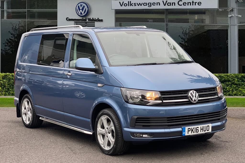 Exterior Features, Metallic paint, Daytime running lights, Safety, Cruise control, Audio / Communications, Composition colour radio with 5'' touchscreen, Driver Convenience, Rear parking distance sensor, Interior Features, Climatic air conditioning in cab, Simora upholstery, Packs, Lights and vision pack - Transporter, Paint - Metallic, Metallic - Acapulco blue, Exterior Features, 2 speed windscreen wipers/intermittent wash, Electric front windows, Heat reflective glass, Heated front windscreen, Heated rear window and wash wipe, Privacy glass rear + load compartment with green heat insulating glass, Body coloured bumpers, Body coloured door handles, No windows in rear side panels, Automatic coming/leaving home lighting function, Automatic headlights, Front fog lights with cornering function, Safety, ABS with electronic brake distribution, ESP, Parking brake - hill hold control, Traction control, Collision prevention assist, Auto dimming rear view mirror, Body coloured door mirrors, 3 point inertia reel belt on all seats, Drivers airbag, Front passenger airbag deactivation, Height adjustable seatbelts for outer cab seats, Internal central locking control, Audio / Communications, Bluetooth connectivity with WLAN, 4 speakers, DAB radio/CD player, Driver Convenience, Driver alert with Multi-function display plus, Headlight range control, Miscellaneous, Digital clock, Rev counter, SD card slot, Seatbelt warning indicator, Service indicator, Trip computer, Tyre pressure monitor, Diesel particulate filter, Electrical, 12V accessory socket, Interior Features, Dust/pollen filter, 2 storage trays in dashboard, 2 sun visors folding and pivoted, Additional 12v accessory socket, Drinks holder, Height and rake adjustable steering column, Interior entry steps, Locking glovebox, Multifunction leather steering wheel, gearknob and gaiter, Open storage compartment in dash panel including mobile phone holder, Storage compartments in doors, Storage net on lower dash passenger side, 2 rear interior lights, switchable by door, Cab interior light, Packs, Cab comfort pack - Transporter Kombi, Trim, 3 seater rear bench, Drivers seat adjustable for reach and rake, Height adjustable head restraints, Passenger seat with reach and rake adjustment, Security, Anti-theft alarm with rear control in cab, backup horn and towing protection, Electronic immobiliser, Interior (cab only) and tow away protection, Locking wheel bolts, Thatcham category 1 alarm, Towing, Front and rear towing rings