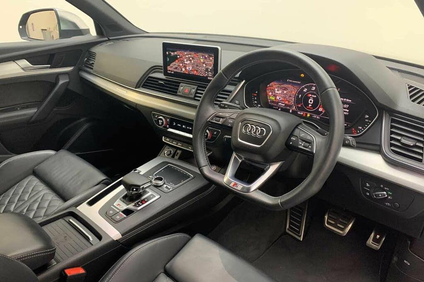 Rear-view camera, Extended LED Interior Lighting Pack - multi-coloured, Comfort and Sound Pack, Audi Beam - Front door puddle illumination, Advanced key, Bang & Olufsen Sound System, MMI Navigation Plus with MMI Touch, 6-cyl. turbo diesel engine 3.0 l/255 kW V6, TDI common rail base engine is TU8/T2S, Fine Nappa leather with 'S' embossing on the front seat backs, Privacy glass, Hill Hold Assist, 20" x 8.0J 5-twin-spoke star design contrasting grey, diamond cut finish alloy wheels with 255/45 R20 tyres, Audi Drive Select, Audi Pre-sense City, Audi Virtual Cockpit