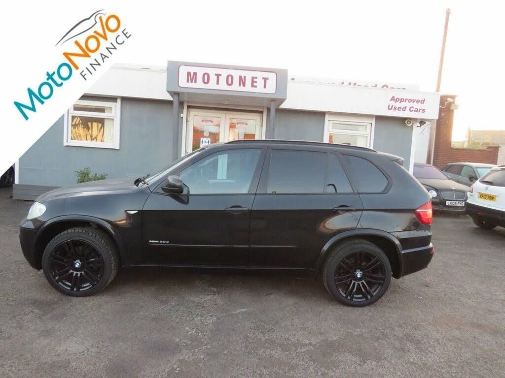 12V socket in luggage compartment, 3 rear 3 point seatbelts, 6.5" colour display screen, 60/40 split folding rear seat, ABS, ADB - Automatic Differential Brake, Anthracite Velour floor mats, Automatic dimming and folding door mirrors + interior mirror, Automatic Stability Control (ASC), Auxiliary point for auxiliary devices, BMW professional twin tuner radio with single CD player and MP3 CD playback facility, Body coloured bumpers, Body coloured door handles, Body coloured electric adjust heated aspherical door mirrors, Boot lashing points, Brake force display, CBC - (Cornering brake control), Child locks on rear doors, Clear indicator lenses, Crash Sensor - activates hazard/interior lighting + unlocks doors, Double kidney grille with chrome surround and titanium slats, Downlights in exterior door handles, Driver/Front Passenger airbags, DSC - Dynamic Stability Control, Dynamic brake control, Dynamic Traction Control - DTC, Electric front seats + driver memory, Electric front/rear windows with anti-trap, Electric headlight adjustment, Electrically adjustable tilt/slide panoramic glass sunroof, Electronic brake force distribution, Electronic parking brake, Exit lighting, Follow me home headlights, Footwell lights, Front and rear cupholders, Front armrest with storage bin, Front fog lights, Front passenger airbag deactivation, Front passenger seat occupancy sensor, Front side airbags, Front/rear courtesy lights with soft on/off dimming, Front/rear reading lights, Green tinted glass, Headlight washer jets, Heat insulated glass, Heated front seats, Heated washer nozzles, Height adj rear head restraints, Height adjustable front seatbelts, Hill descent control, Hill start assist, iDrive controller on centre console, Illuminated glovebox with lock, Individual anthracite headlining, Intermittent rear wash/wipe, Isofix child seat preparation, ITS head airbags for front/rear, Lights on warning, Locking wheel nuts, Luggage compartment cover, M aerodynamic body kit, M leather steering wheel, Matt aluminium exterior trim, Media pack including sat nav - X5, On board computer, Oval chrome exhaust tailpipes, Park distance control, Pyrotechnically pre-tensioned front seatbelts, Rain sensor with auto light activation system, Reach + rake adjustable steering column, Remote central locking, Remote tailgate release, Run flat tyres, Securing rings in luggage compartment, Self levelling rear air suspension, Service interval indicator, Servotronic PAS, Smokers pack, Stop/start button, Storage bins on all doors, Sun protection glass, Sunvisors with illuminated vanity mirrors, Thatcham cat 1 remote alarm/immobiliser, Tilt/height adjustable front head restraints, Toolkit located in luggage compartment, Two piece tailgate, Tyre puncture warning system, Warning triangle and first aid kit, Xenon headlights