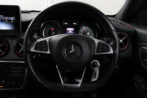 Outside temperature gauge,Trip computer,Low fluid warning light,Service indicator (ASSYST),Bluetooth system,Attention assist,AMG speed sensitive sports steering,Active park assist with parktronic system,Collision prevention assist plus,DYNAMIC SELECT with a choice of driving modes (ECO, Comfort, Sport, Sport+ and Individual),Lowered sports suspension,Mercedes Audio 20 radio/single CD,USB connection,Media interface,Privacy glass,Body colour door handles,Body colour bumpers,Automatic headlights,Front and rear electric windows,AMG body styling,Body colour side skirt,Heated rear window with timer,Automatic rain sensing wipers,Adaptive brake lights,Dual stainless steel exhaust tailpipes,Electric adjustable heated door mirrors,Bi-Xenon headlights with LED day running lights,Black high gloss beltline,High gloss black door mirror housing,Front sports seats,Rear head restraints,Reading lights,Front footwell lights,Illuminated glovebox,Door sill illumination,Height/reach adjustable steering column,1/3 to 2/3 split folding rear seats,Auto Mercedes-Benz child seat recognition sensor,Front centre armrest with storage box,Front head restraints,Sunvisors with illuminated vanity mirrors,Twin console mounted cup holders,Isofix rear child seat fastenings,Dual zone climate control,Black roof lining,Load securing rings in luggage compartment,Illuminated storage compartment,Gearshift paddles,Multifunction steering wheel,Designo seat belts in red,3 spoke flat bottomed leather steering wheel,Sports pedals with rubber studs,12 colour Ambient lighting,Rear footwell lights,Mirror pack - CLA,Front side airbags,ABS with Brake Assist,Child proof door locks,Dual stage Driver/Passenger Airbags,Tyre pressure monitoring system,ESP with ASR,Brake calipers in red,Electronic parking brake,Drivers knee airbag,Hill start assist,Front passenger airbag deactivation,3x3 point rear seatbelts,Window airbags,Adaptive brake system,Front and rear seatbelt reminder,Immobiliser,Remote central locking,Anti theft alarm system,Light aluminium with longitudinal grain interior trim,Black air vent surrounds with red insert,Tirefit,18" AMG 5 spoke alloy wheels